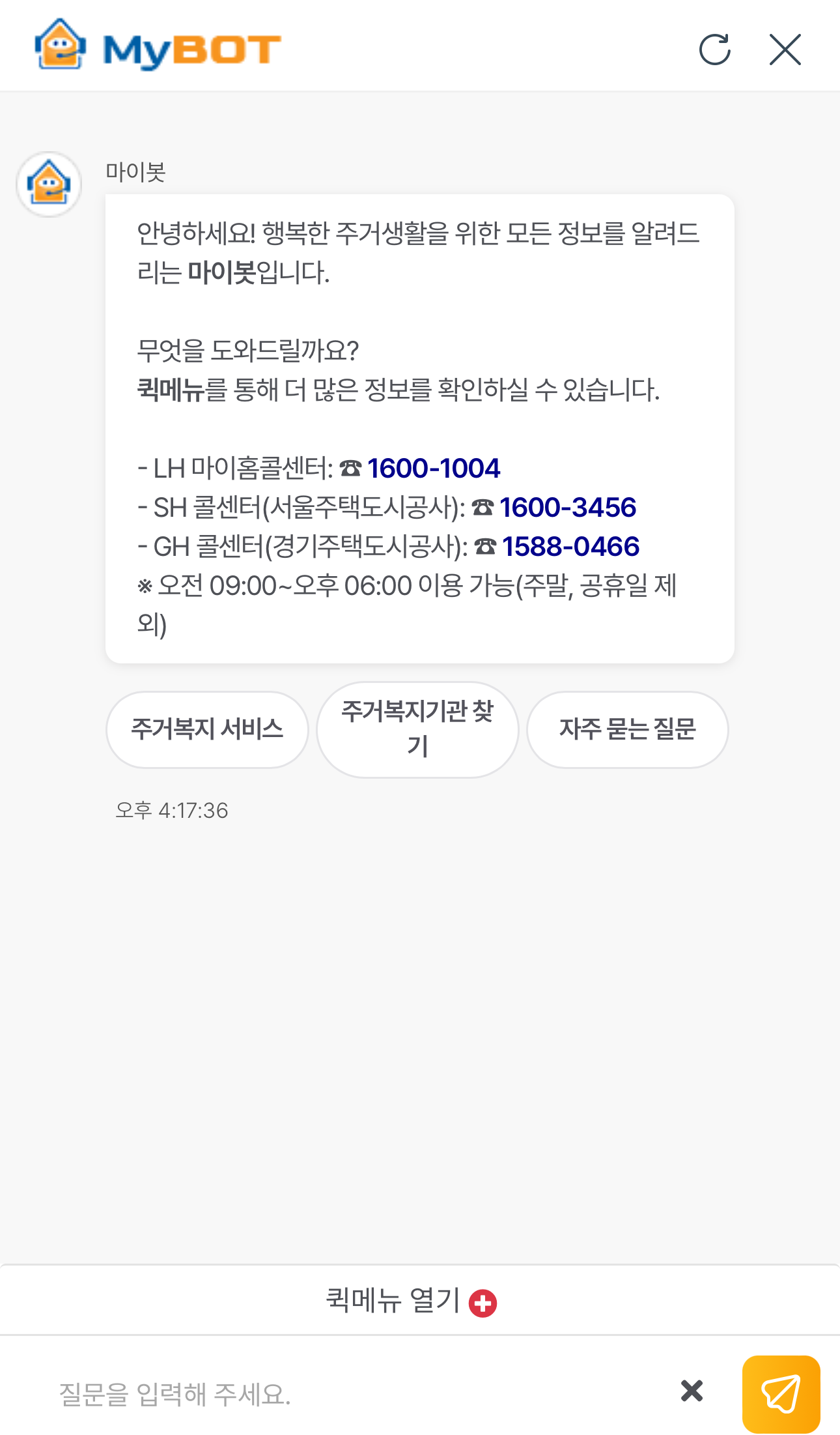더 똑똑한 국토부 마이홈의 AI 마이봇을 이용한다