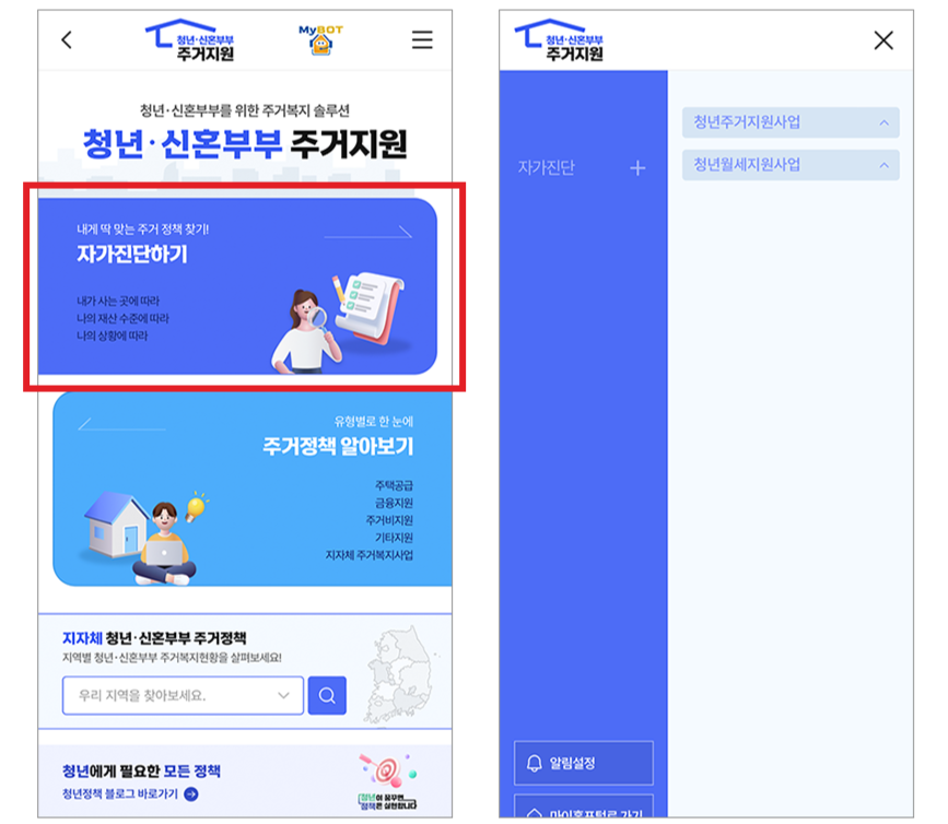- 회원가입 없이 3분 안에 자가진단으로 내게 맞는 지원 정책 확인!