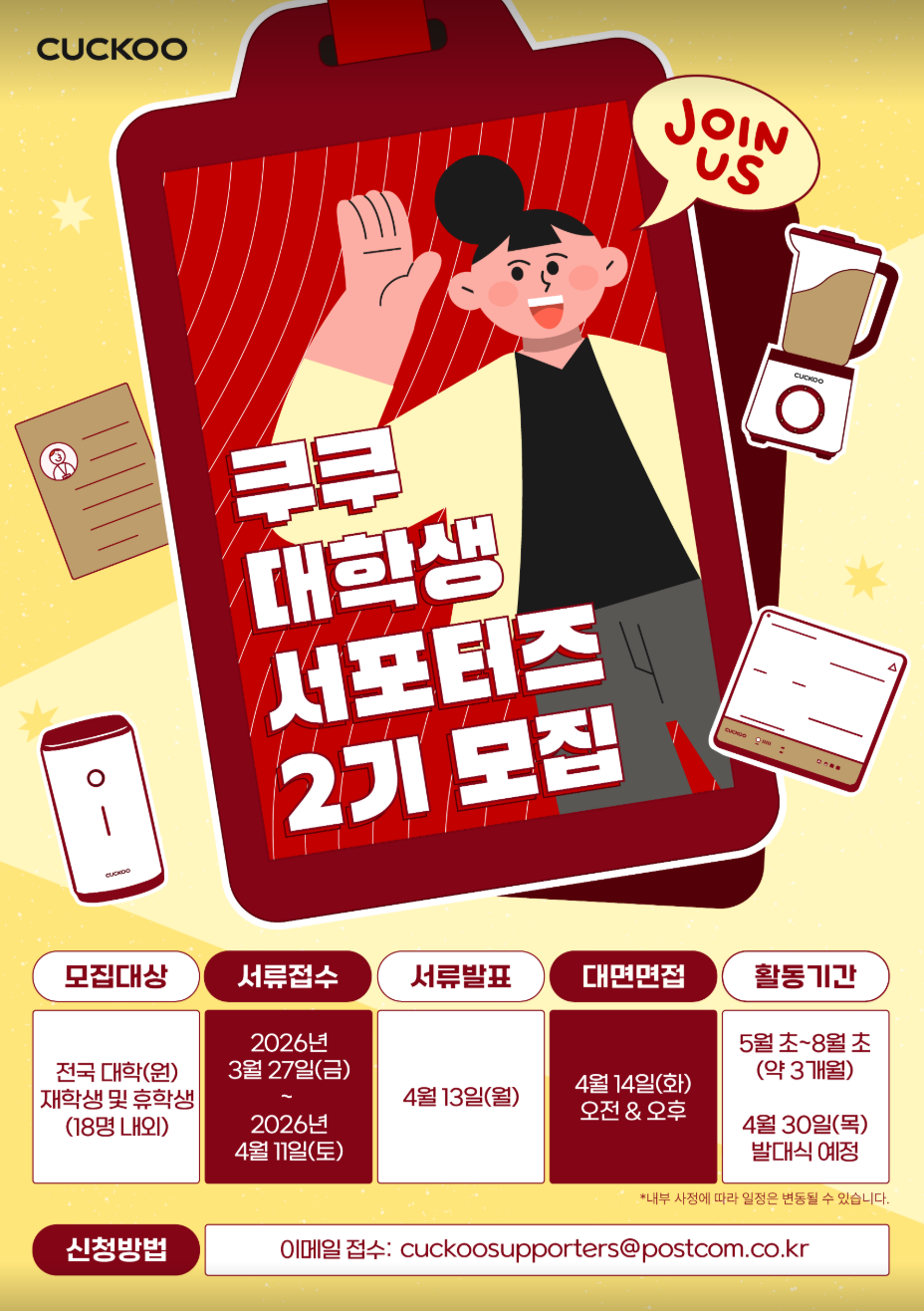 - 서포터즈 운영 사무국 이메일: cuckoosupporters@postcom.co.kr