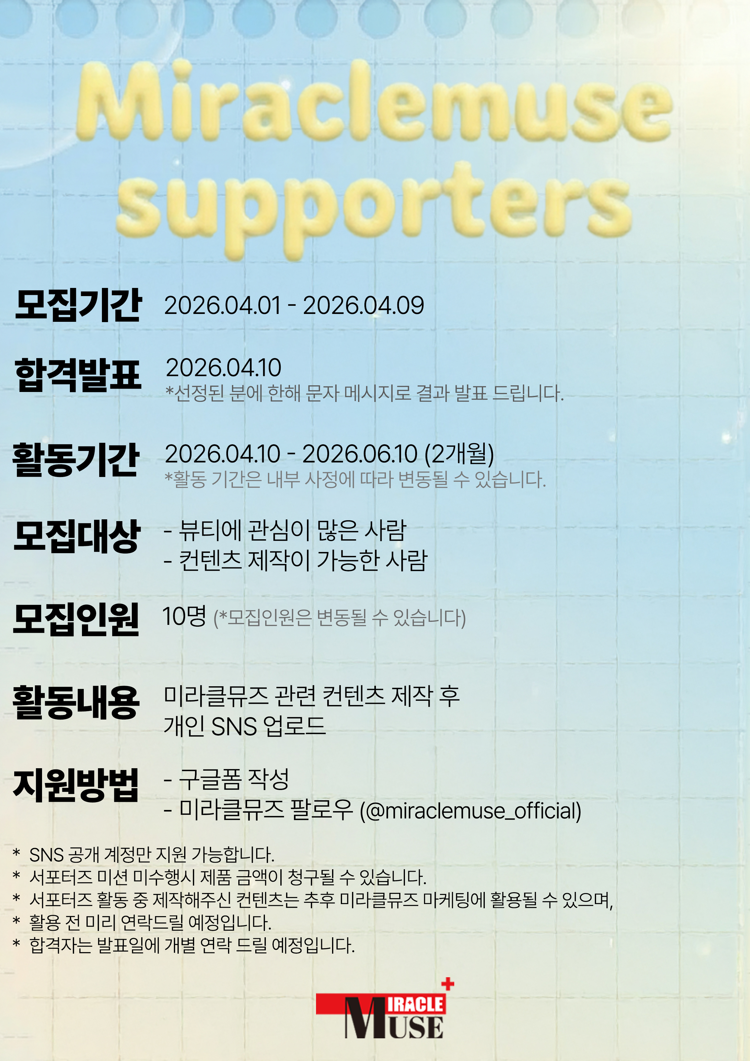 - 우수서포터즈 2명 미라클뮤즈 공식몰 적립금 10만원
