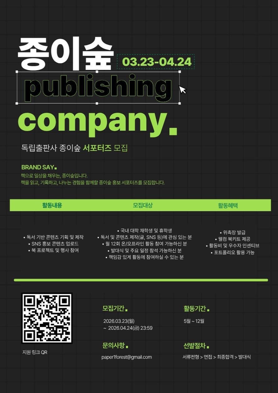 [독립출판사] 종이숲 서포터즈 모집