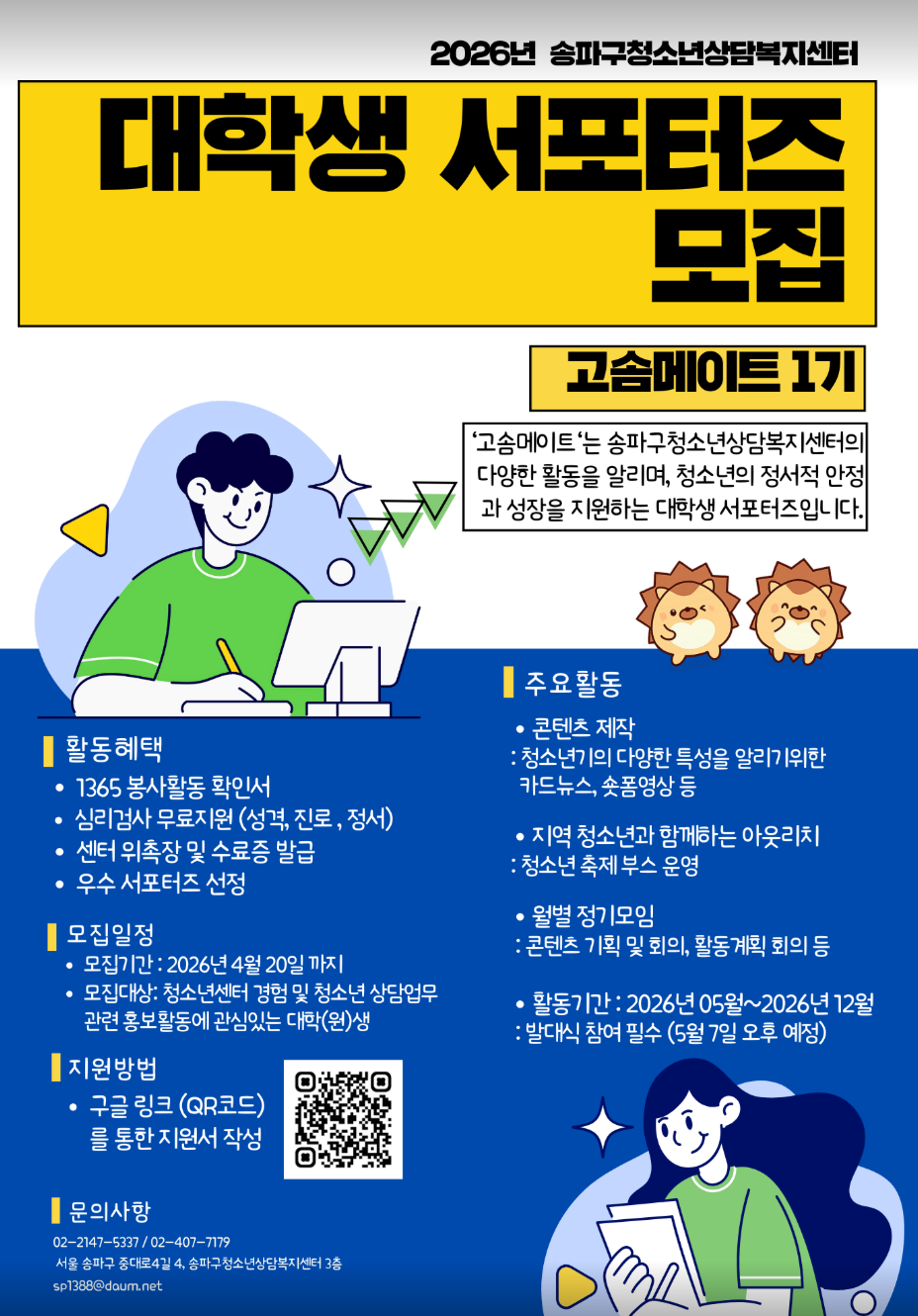 2026년 송파구청소년상담복지센터 대학생 서포터즈 「고솜메이트 1기」