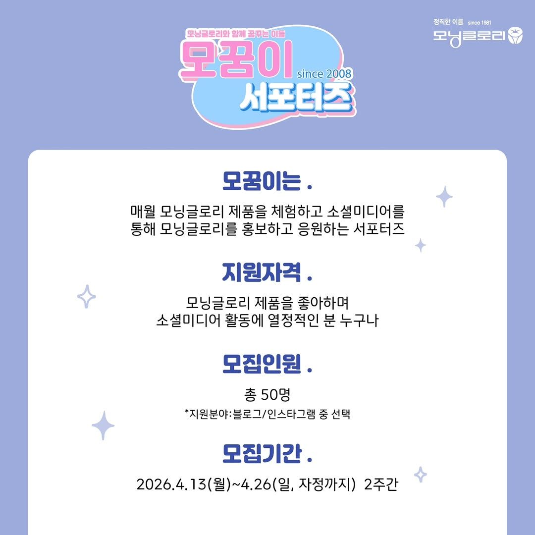 ▶서포터즈 문의사항은 모닝글로리 인스타그램 DM으로 부탁드립니다.