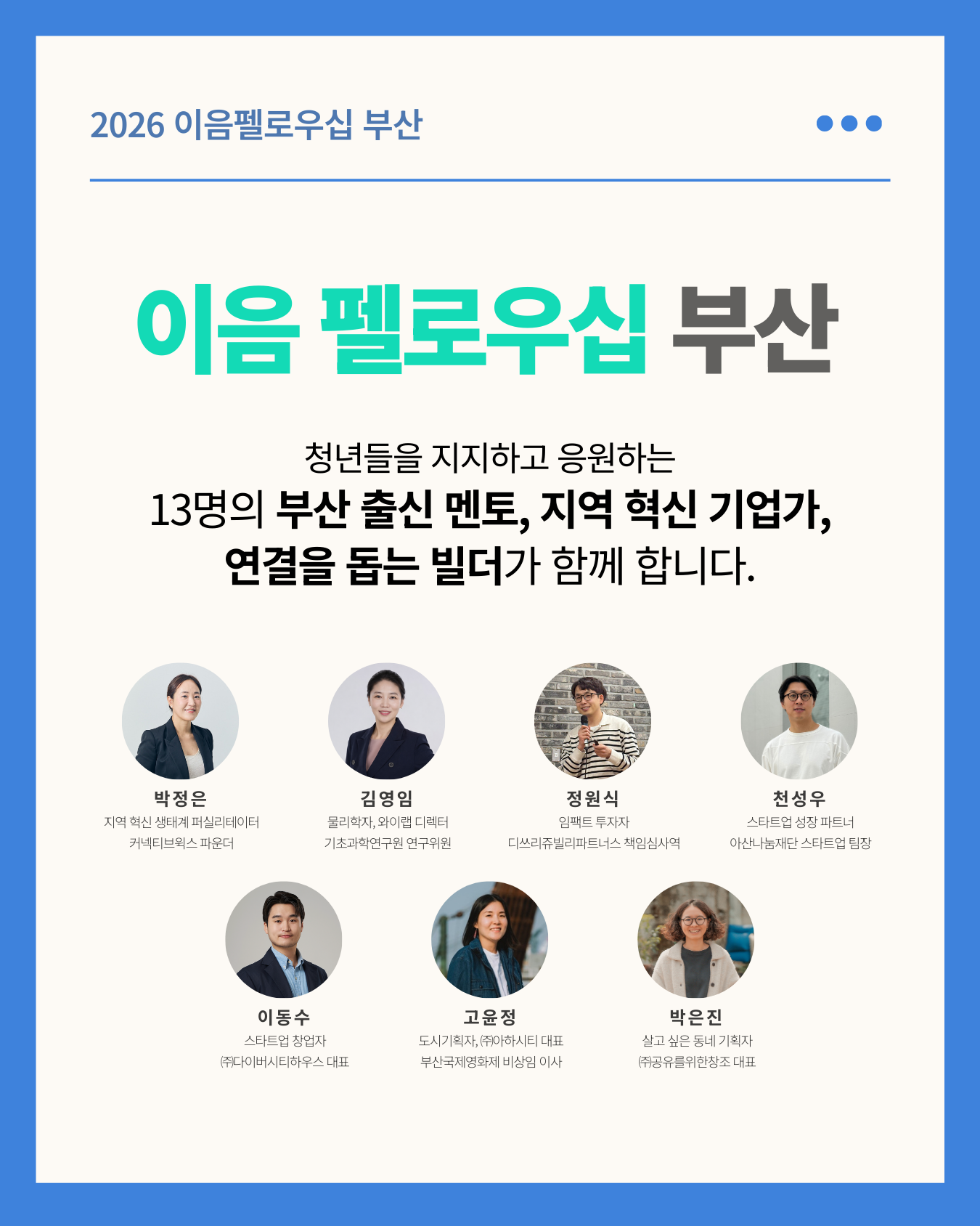 그래서 부산에서 시작하는 글로벌 리더십 프로그램, 이음 펠로우십 부산을 만들었습니다.