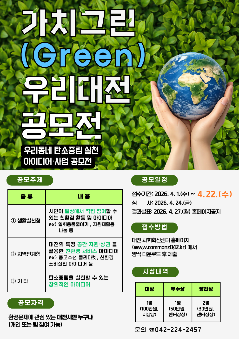 공모명: 가치 그린(Green) 우리 대전 (부제: 우리동네 탄소중립 실천 아이디어·사업 공모)