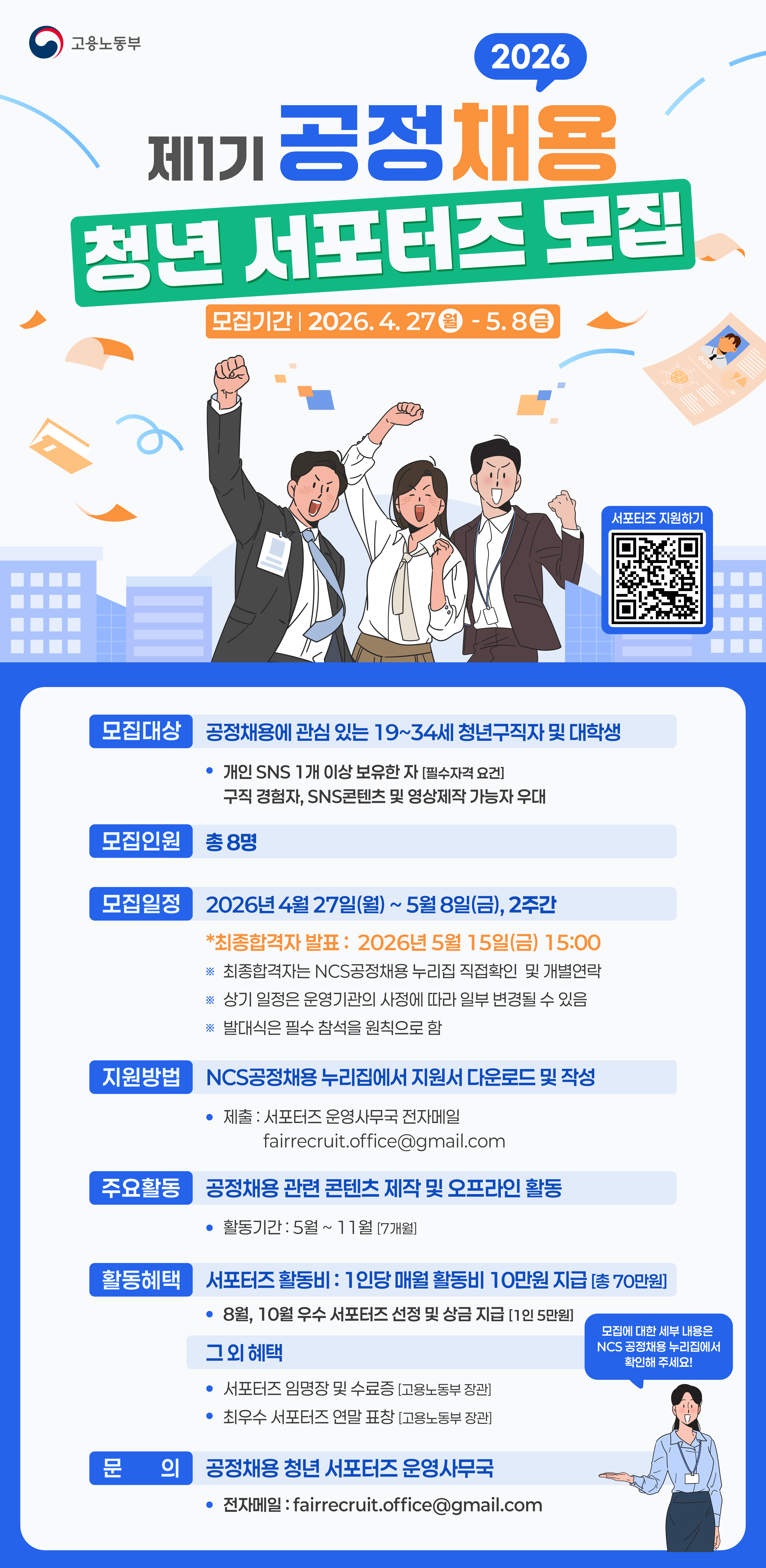 2026년 제1기 공정채용 청년 서포터즈 모집합니다!