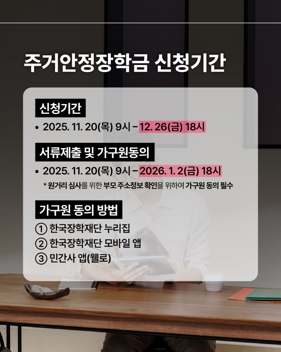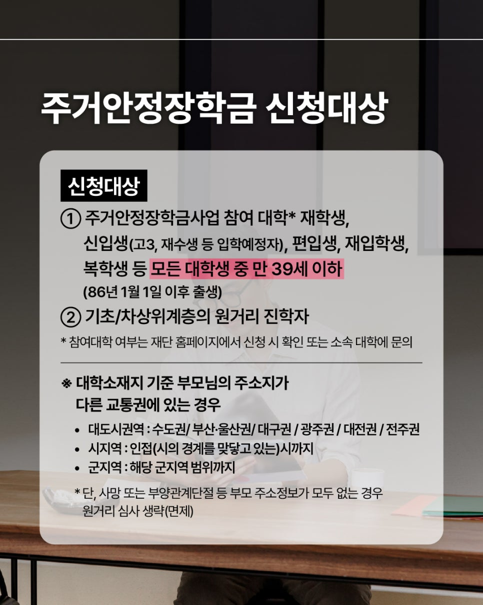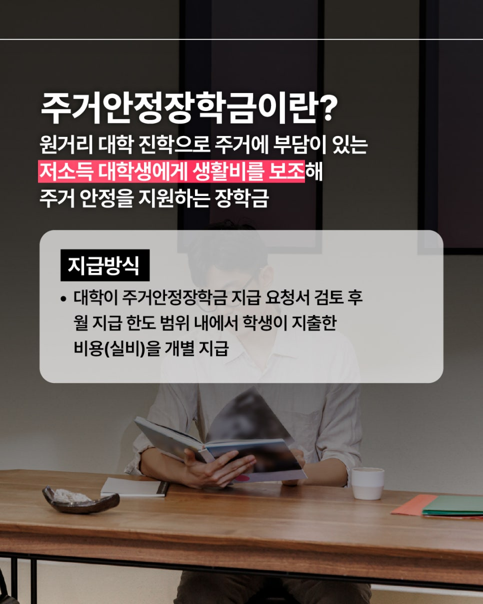 생활비를 보조해 주거 안정을 지원하는 장학금