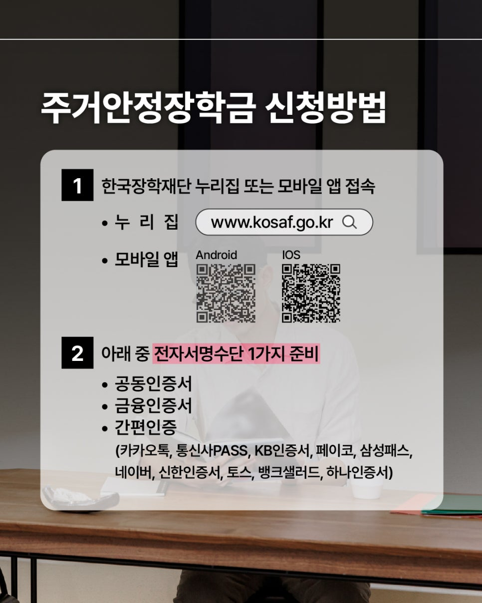 모바일 앱 : 앱스토어에서 ‘한국장학재단’ 검색 후 설치