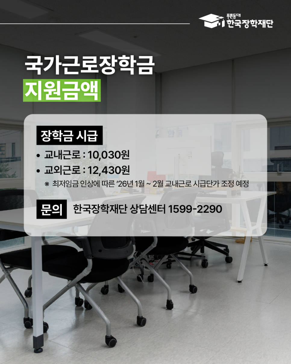 ※ 최저임금 인상에 따른 '26년 1월 ~ 2월 교내 근로 시급 단가 조정 예정
