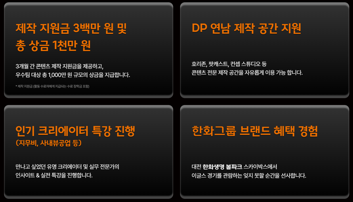 인기 크리에이터 특강, 한화생명 브랜드 경험 등의 실전 경험과 성장 기회를 제공합니다.