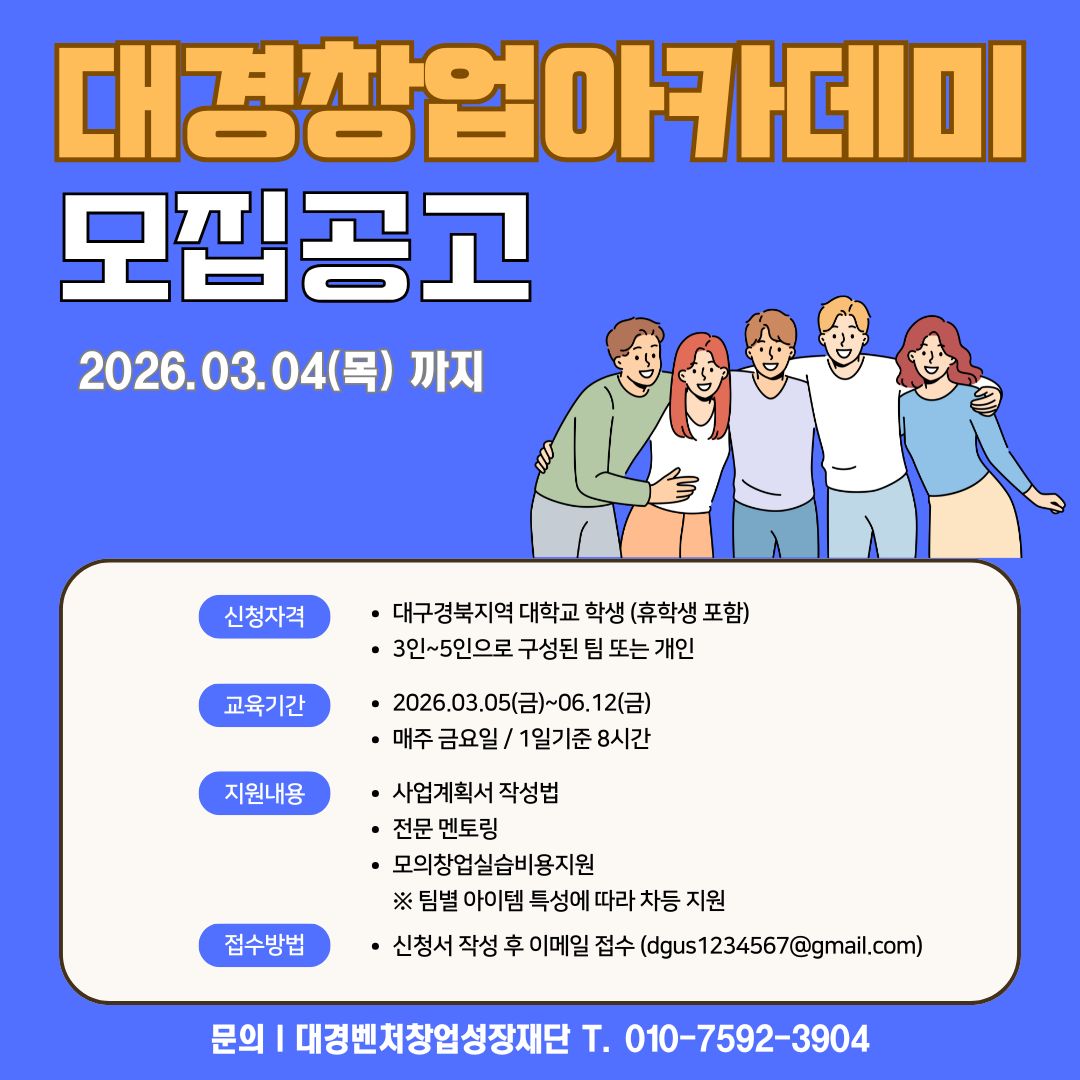 2026년 1학기 " 대경창업아카데미" 함께 할 분 모집합니다. 🤗