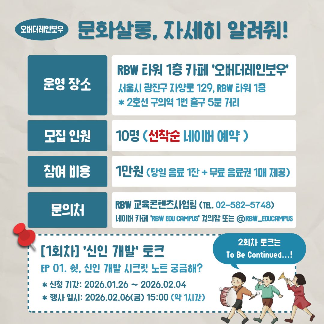 [RBW] 엔터 현직자와의 소규모 엔터 토크, 〈오버더레인보우 문화살롱〉 1회차 모집🤫