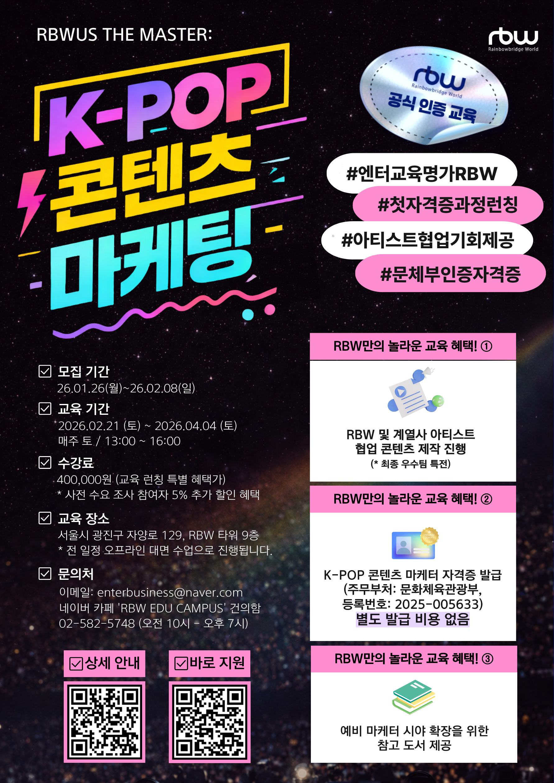 🚀엔터교육 명가 'RBW' 1호 자격증 [K-POP 콘텐츠 마케팅], 모집 중(~2/8)