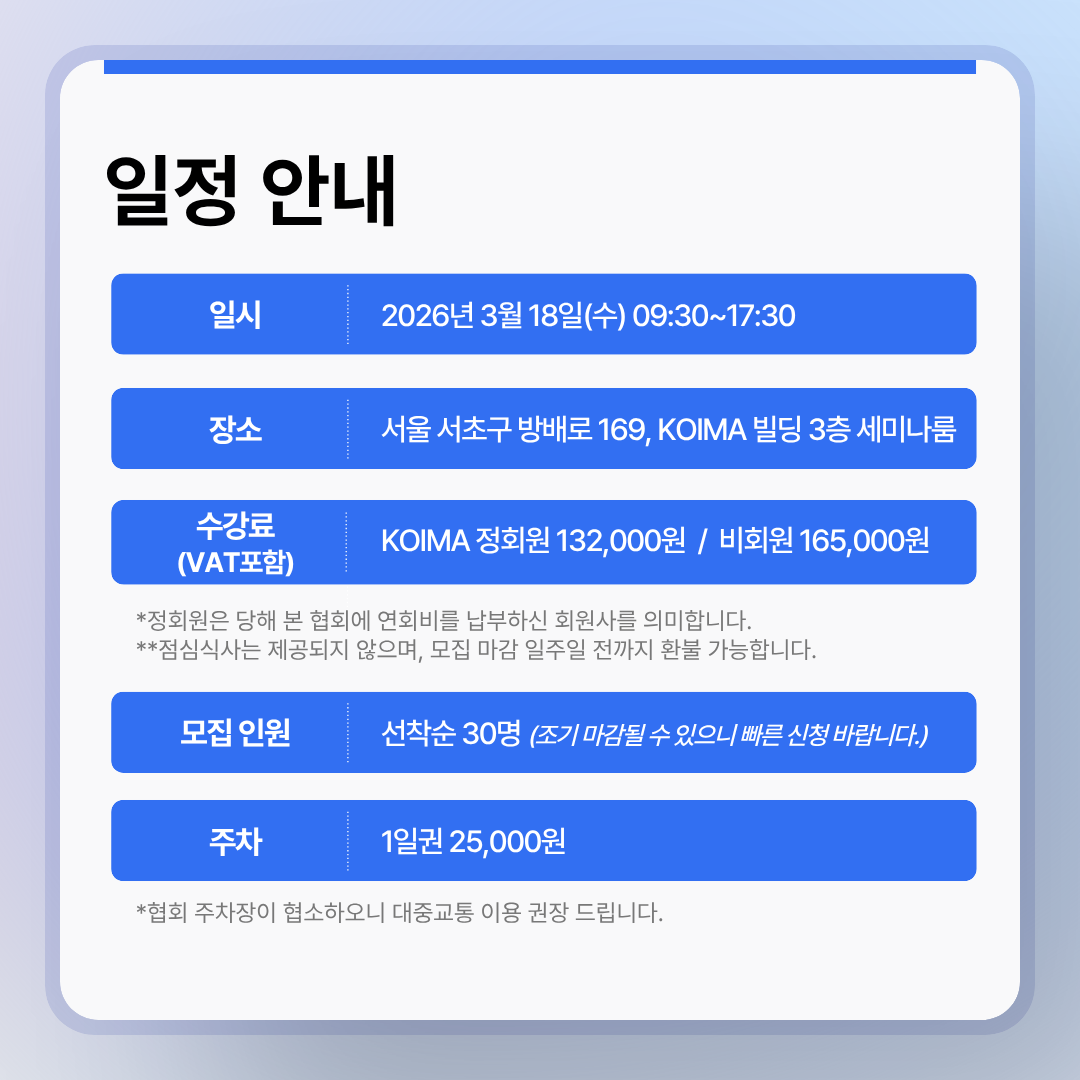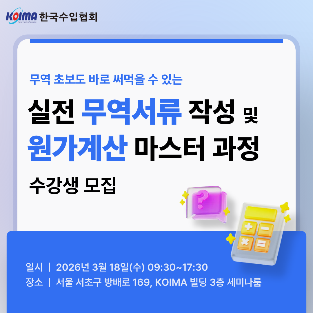 [한국수입협회] 실전 무역서류작성 및 원가 계산법 교육 과정 모집 안내 3.18(목)