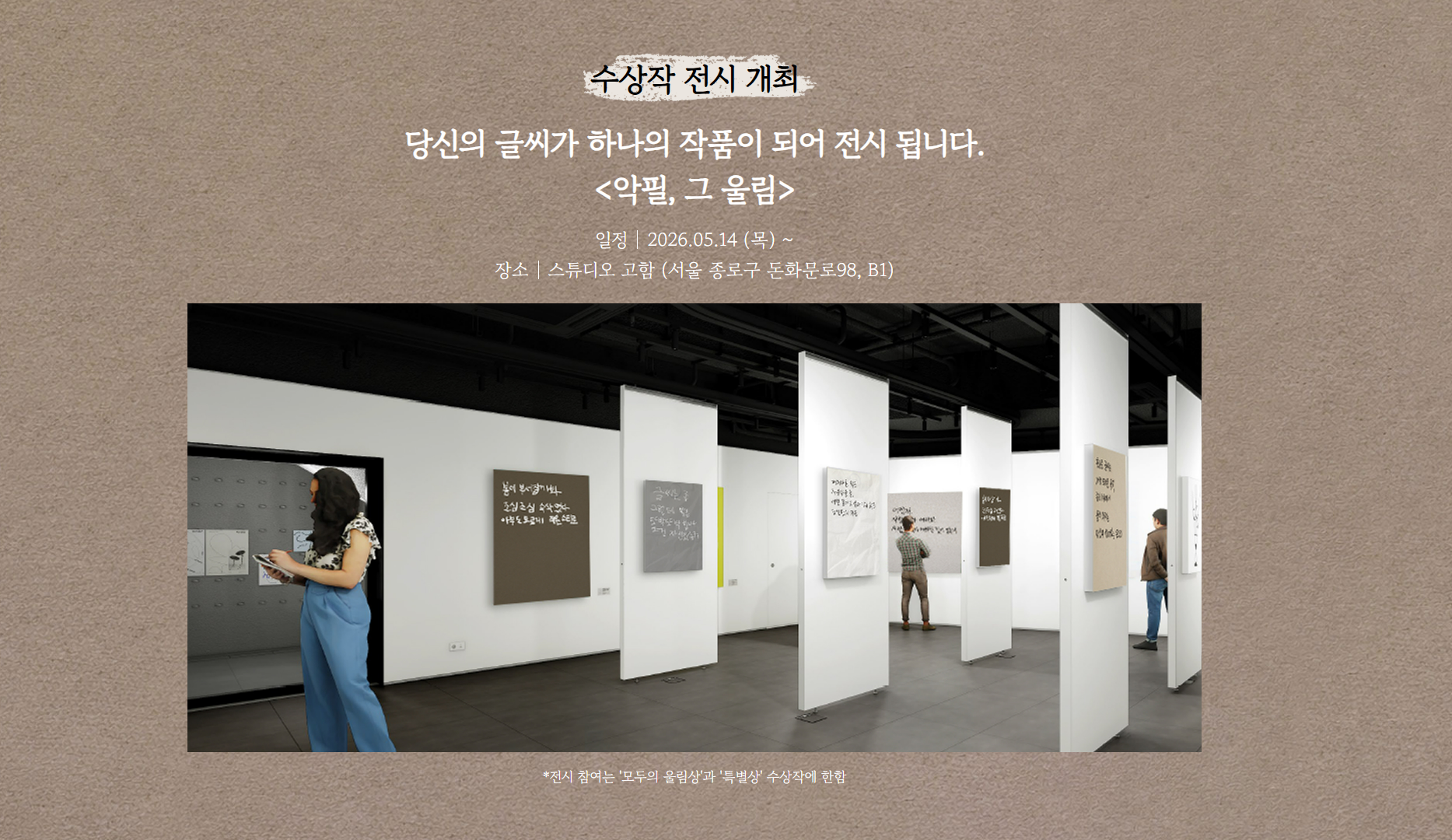 - 수상작 전시 개최: 2026.05.14 ~
