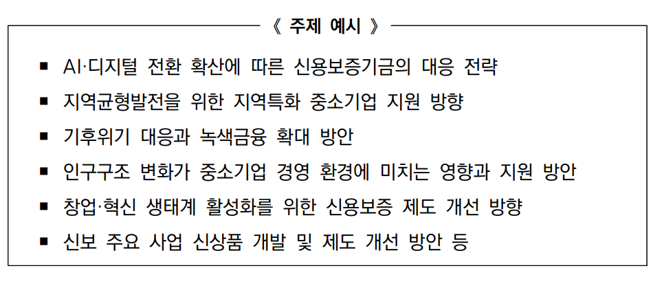 - 신용보증기금의 사업 및 중소기업 금융 발전에 기여할 수 있는 자유주제