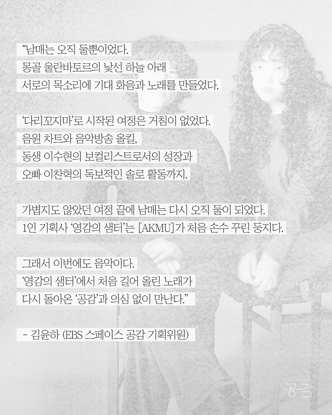 ‘영감의 샘터’에 닻을 내린 [AKMU]의 무료 공연을 즐길 수 있어요.