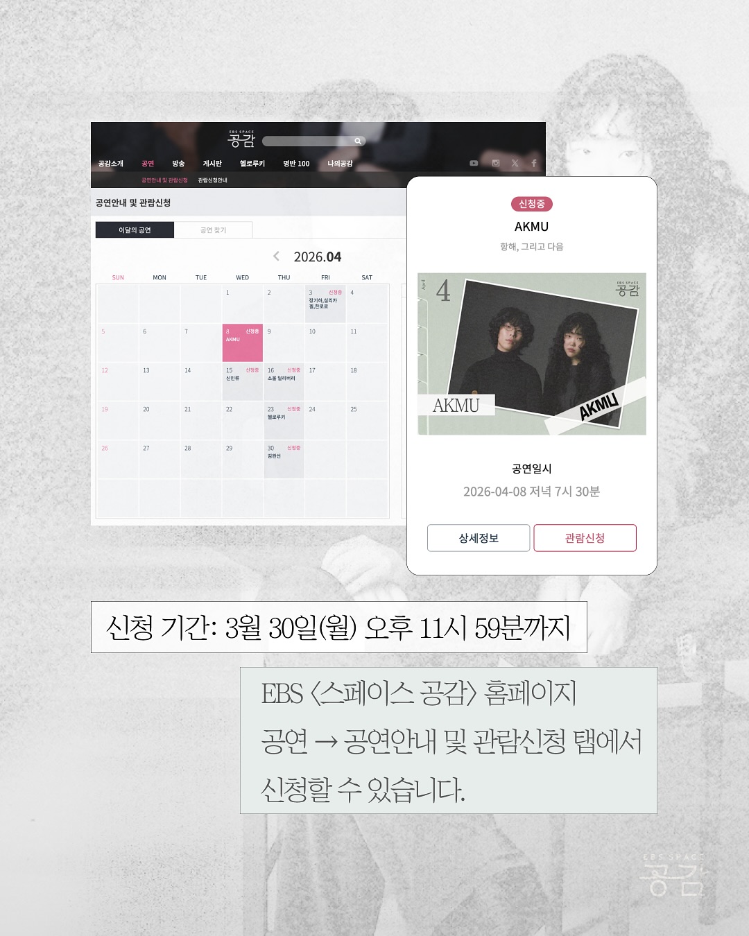 - 사전 예약: EBS <스페이스 공감> 홈페이지에서 관람 신청 후 당첨