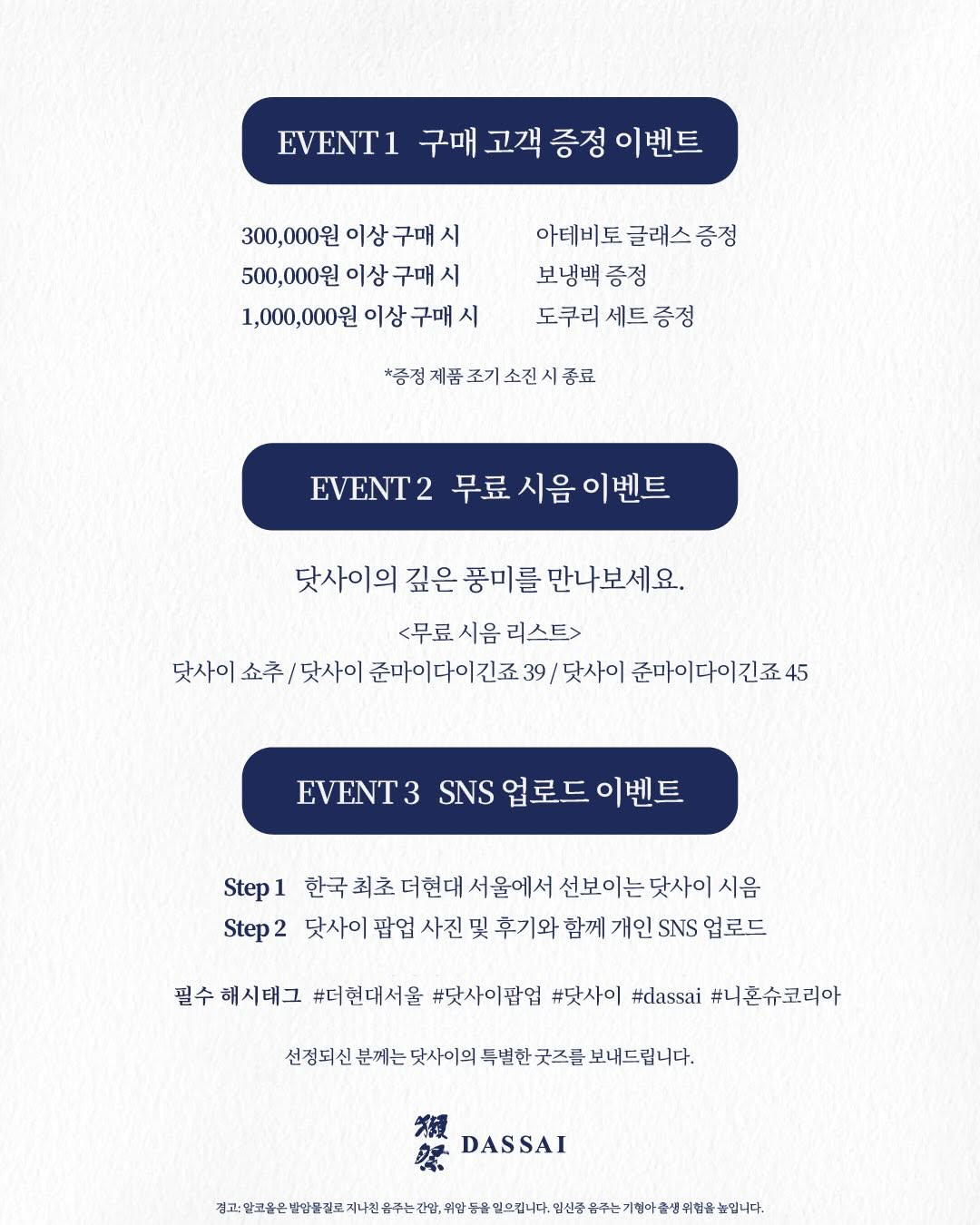 무료 시음과 함께 닷사이가 걸어온 도전의 역사와 브랜드 스토리를 직접 경험해보세요
