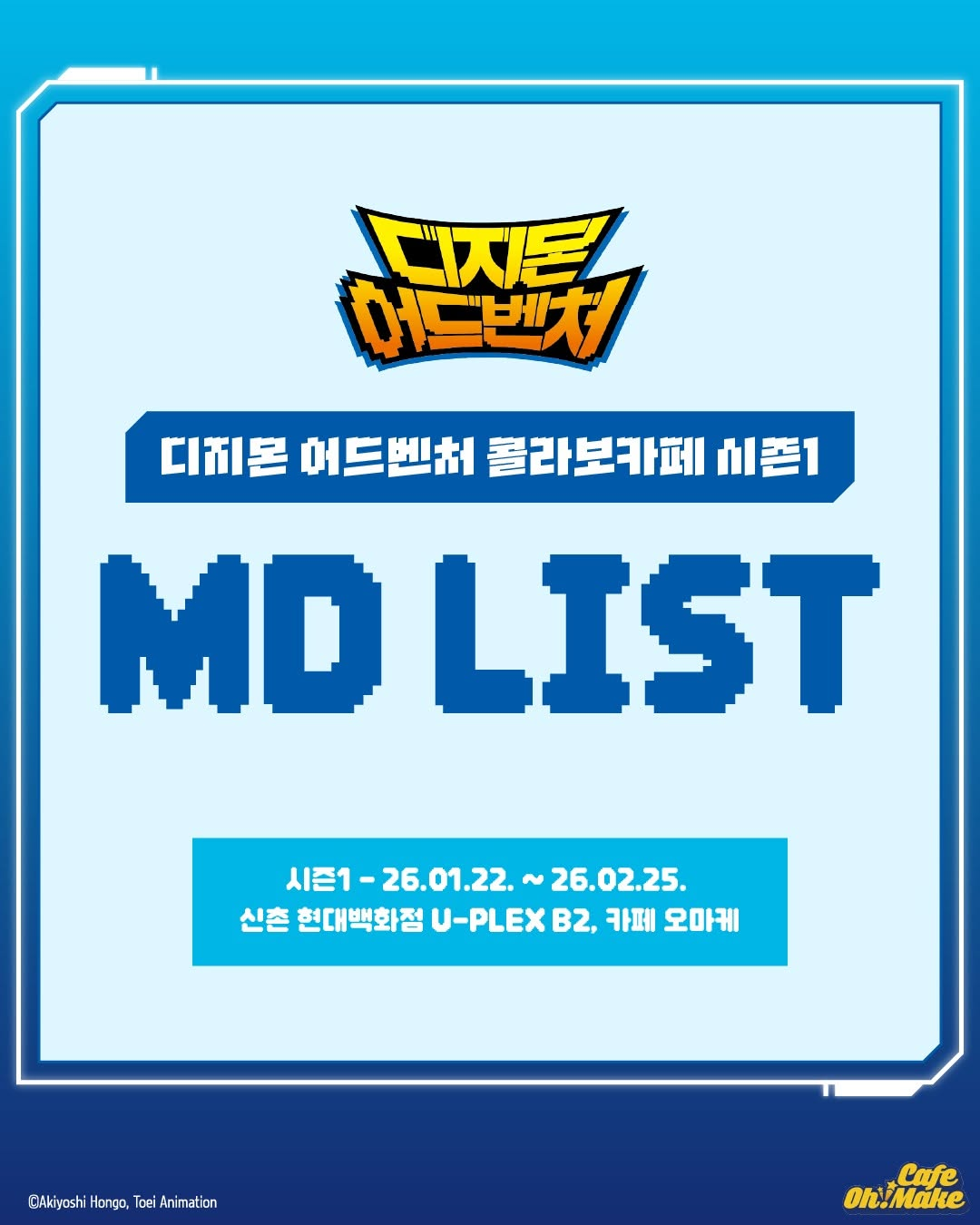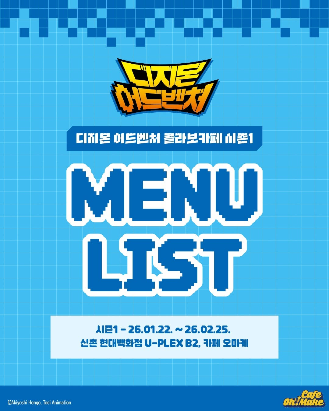 디지몬 어드벤처 세계관을 그대로 재현한 카페 공간과 귀여운 콜라보 메뉴, MD 굿즈를 만나볼 수 있어요.