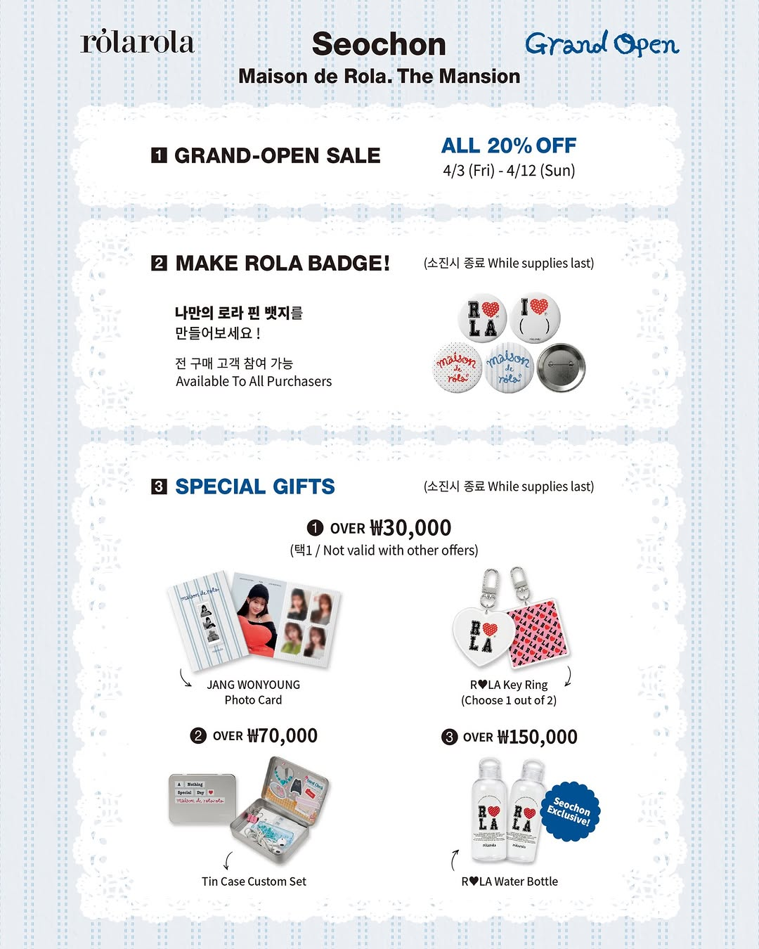 - 5만원 이상 구매 시, ROLA 워터보틀 증정 (서촌 한정)