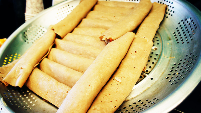 동문시장에 들어서면 한쪽에 빙떡을 파는 할머님들이 쭉 계신다. 빙떡 외에도 호떡, 핫도그, 어묵 등 다양한 먹거리가 있다.