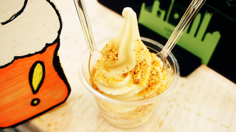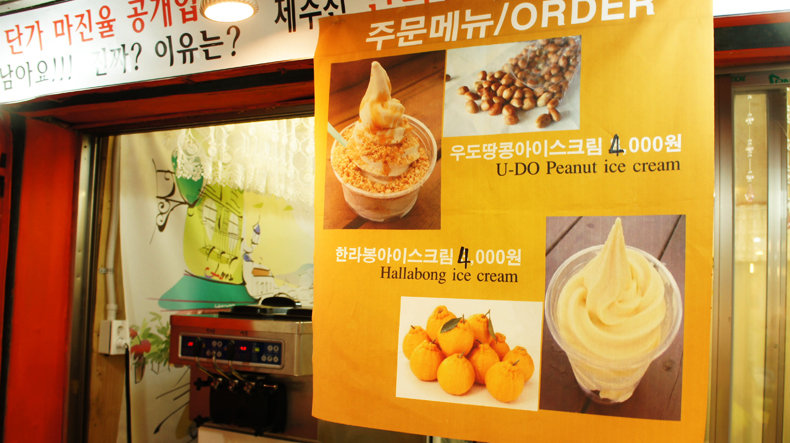 귤하르방 근처, 아이스크림 가게가 하나 있다. '그냥 지나가면 왠지 후회할 것 같은 가게'라는 문구에 걸음을 멈췄다. 마침 날도 더웠고, 아이스크림 사진을 보니 급 땅겼다. 일반 소프트 아이스크림에 땅콩가루 톡톡 뿌려주니 우도땅콩아이스크림 완성.