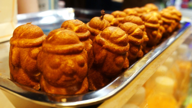 다음 먹거리를 찾아 시장을 헤매던 중, 이 올망졸망 귀여운 생명체(?)가 눈에 띄었다. 검지 길이의 돌하르방 모양 빵. 일명 '귤하르방'이다. 빵 안에는 팥고물 대신 귤 잼이 들어있다. 맛은 상상할 수 있는 그 맛. 하지만 제주에 왔으니 한 번쯤은 먹어볼 만하다.