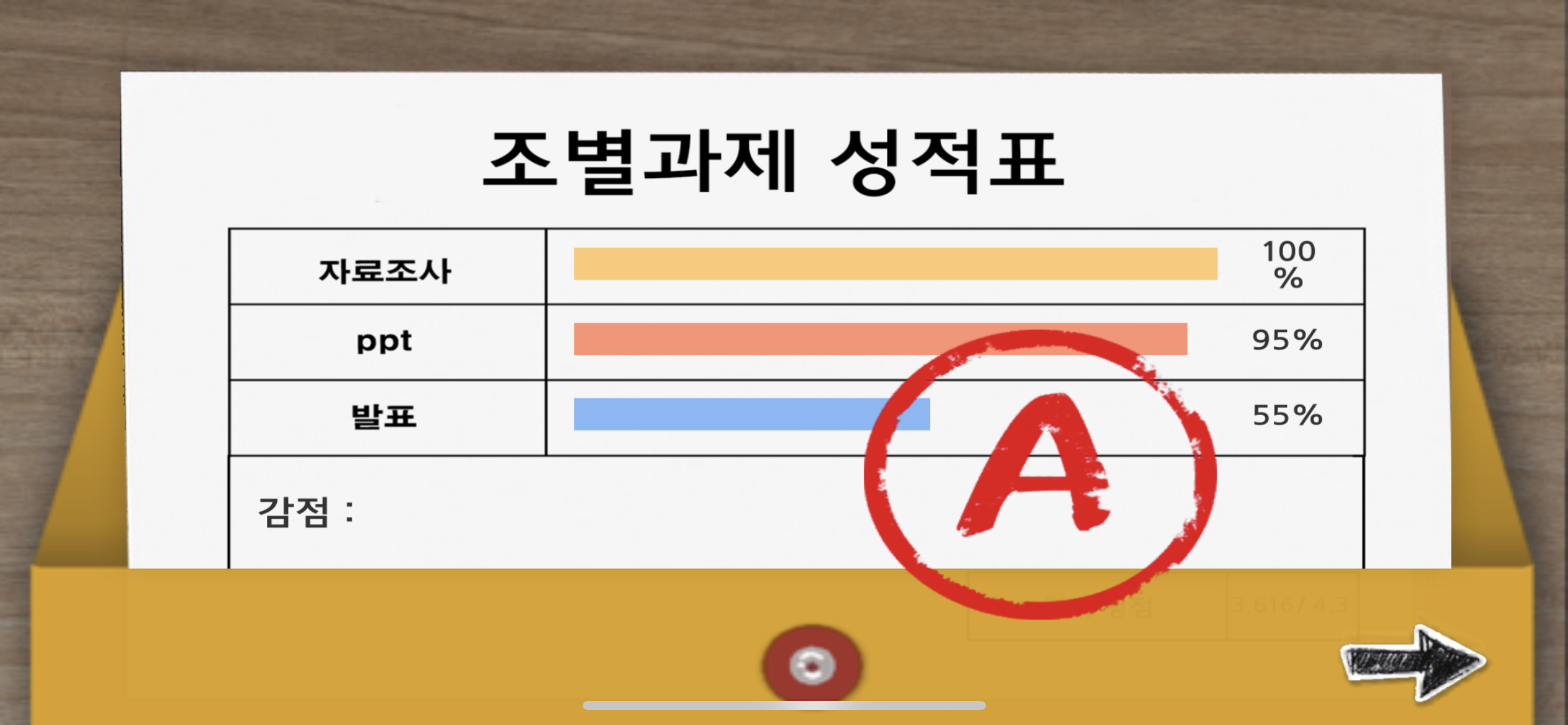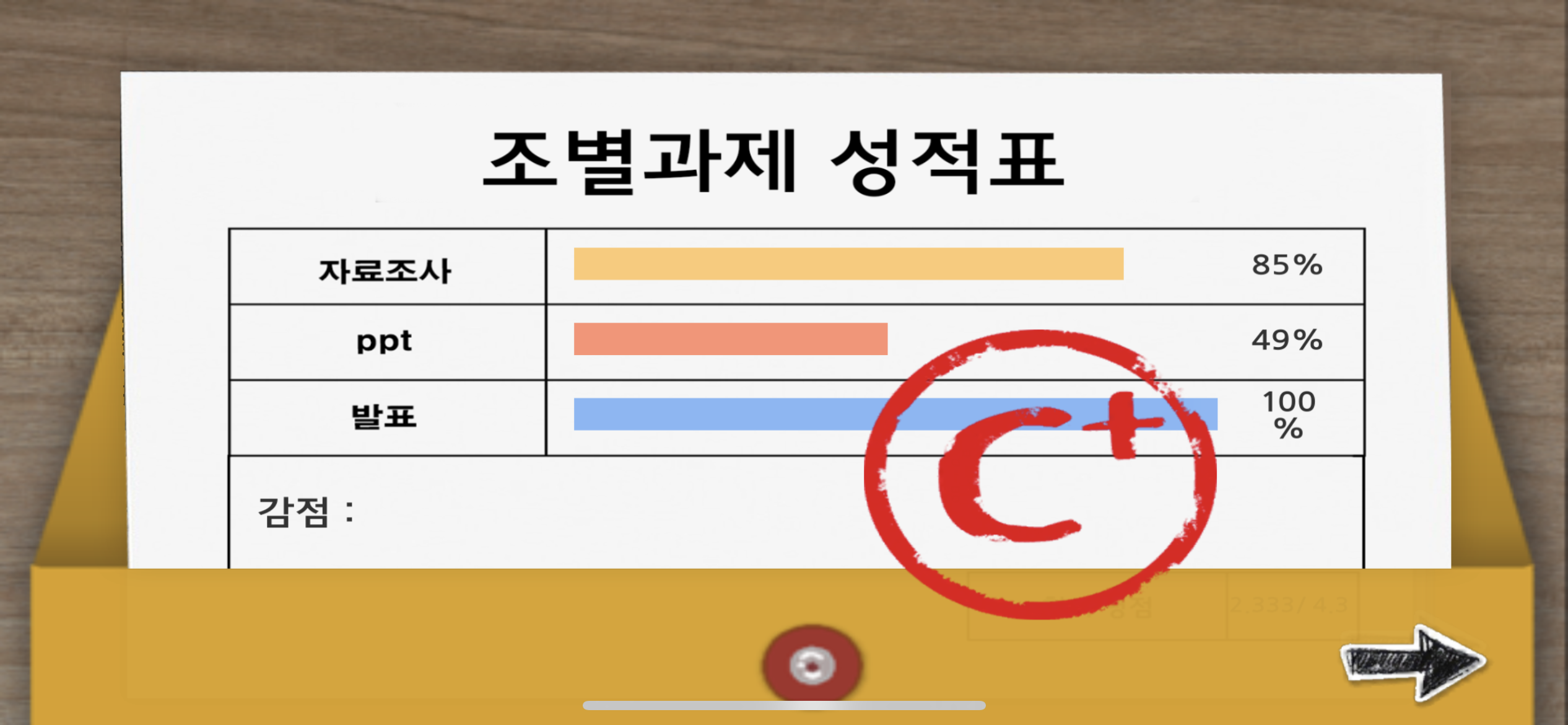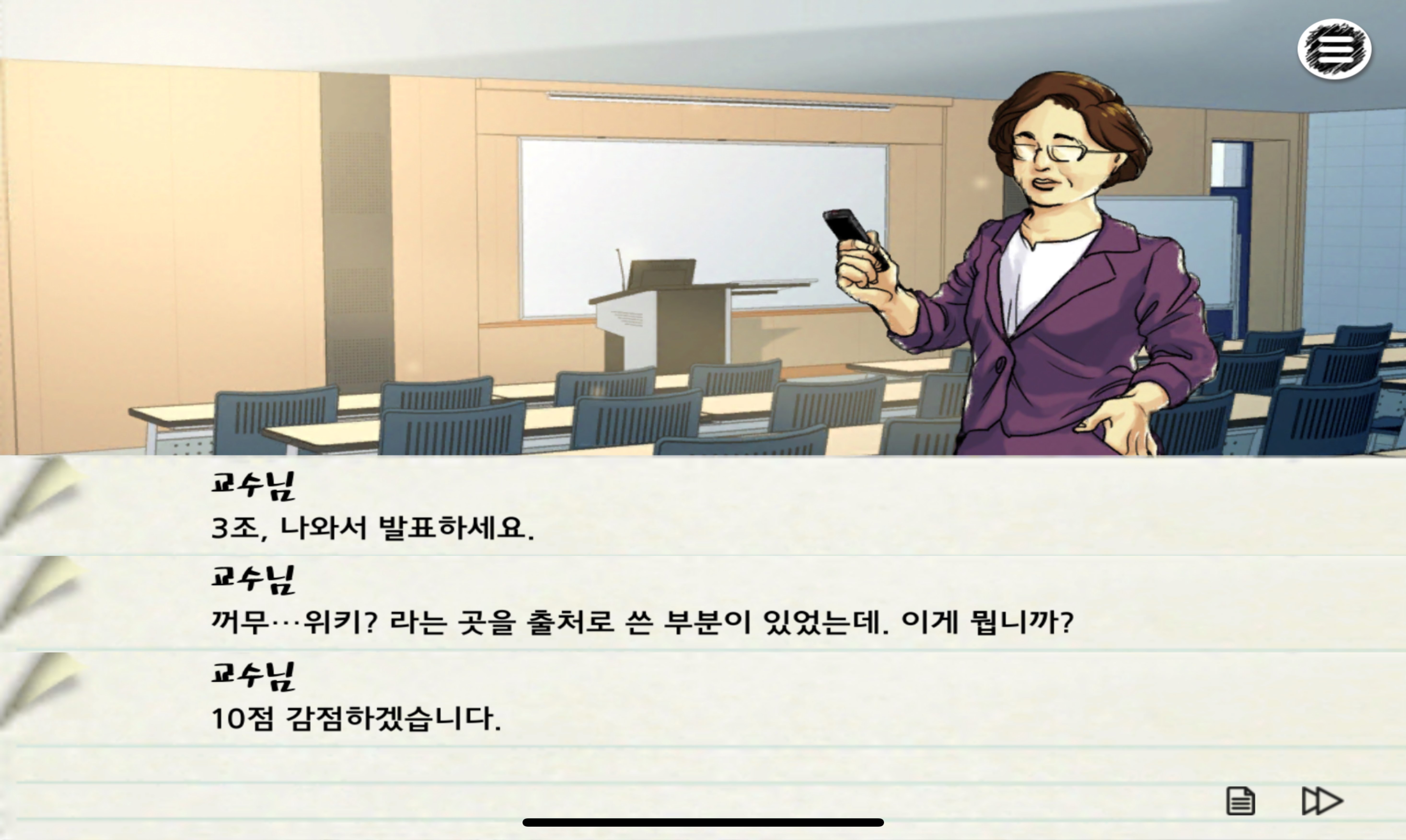 발표를 위해 시작할 때 주사위를 굴려 화술 능력치를 만땅으로 올려놨다. 조별과제는 결국 발표가 중요하니까.