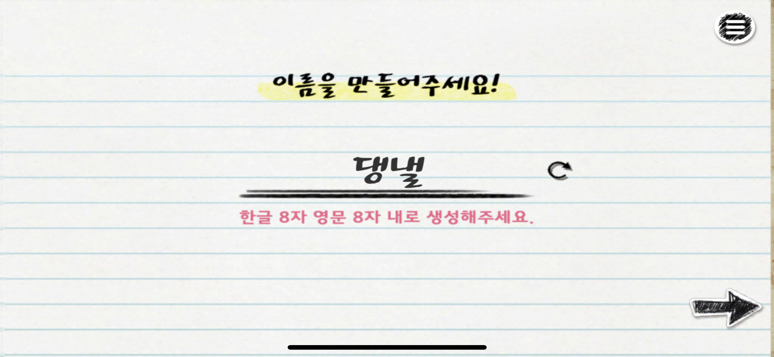 세련되지는 않지만 나름 귀여운 메인화면을 지나니 이름을 만들라고 한다. 나는 대학내일 소속이니까 댕낼!