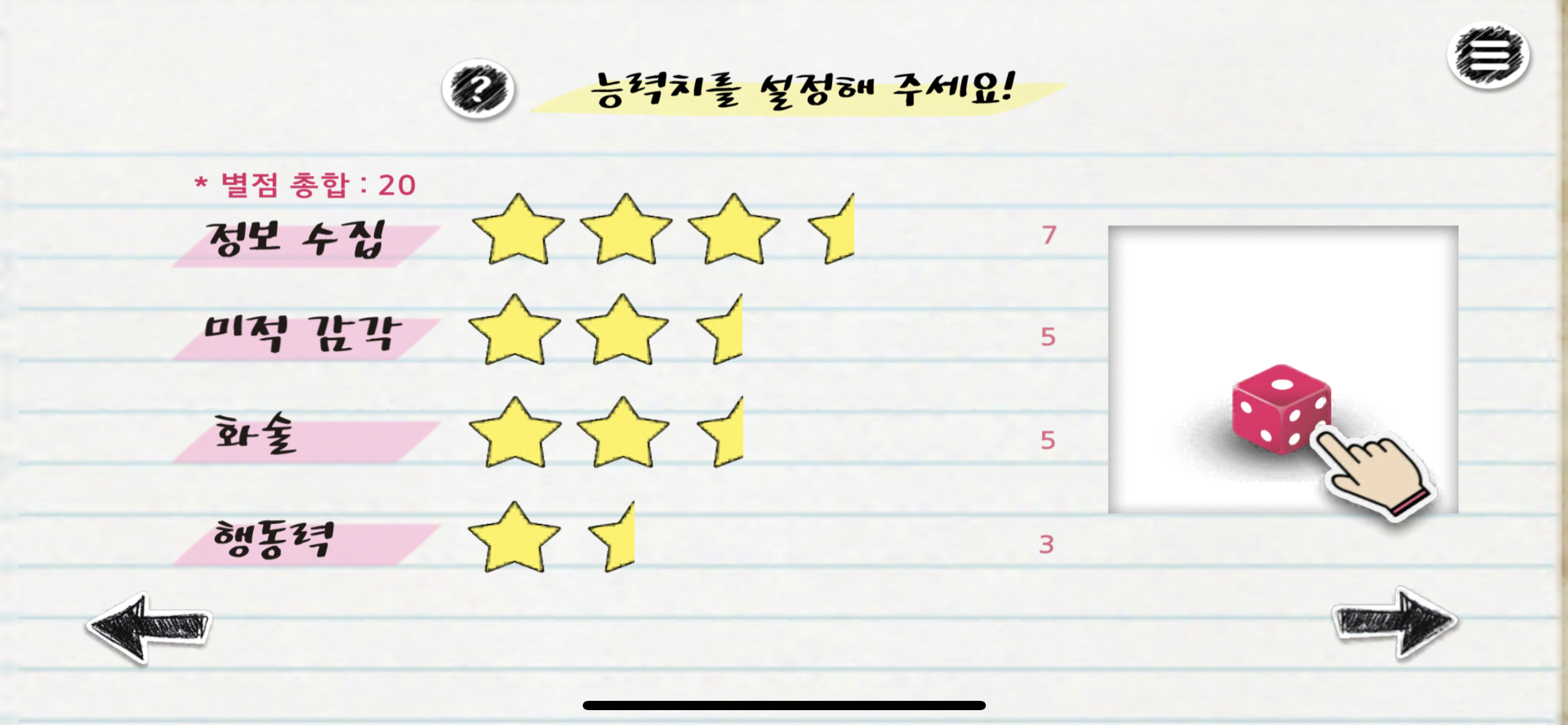 게임 시작 전, 플레이에 영향을 주는 주인공의 능력치를 설정해야 한다. 학점을 잘 받는 게 가장 좋은 엔딩 아닌가요?
