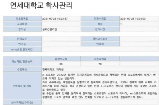 게임도 하나의 스포츠라는 인식을 주려는 목표도 있어요. 그래서 강의명도 '비대면 e-스포츠'라고 만들게 되었고 학교의 심사를 거쳐 개설되었죠.