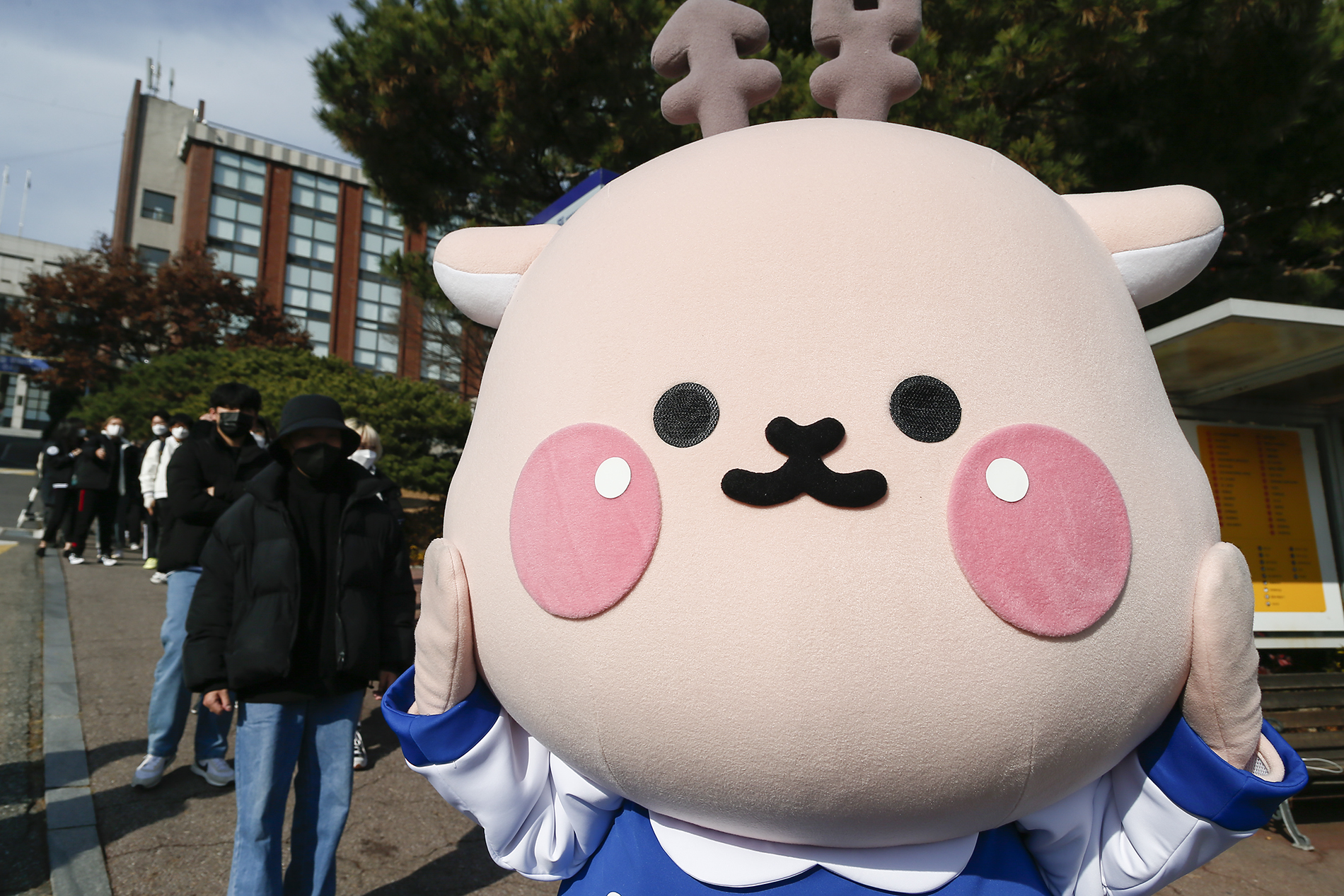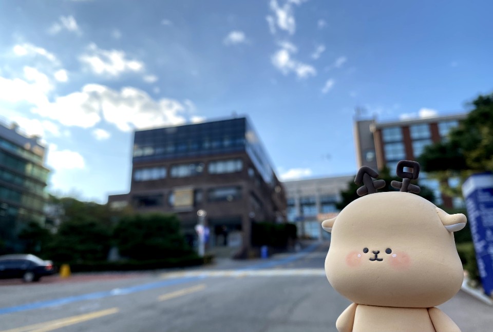 맞아! 처음에는 에타에서 슴우들과 재미있는 이야기를 나누는 정도였지. 그러다 올해 6월에 우리 학교 캐릭터 공모전이 있다는 소식을 들었다뭉. 슴우들과 더 가까워질 수 있는 기회일 것 같아서 나도 지원했어! 나 말고도 27명의 친구가 더 있었는데 슴우들의 투표 끝에 고맙게도 내가 선정됐지뭉.