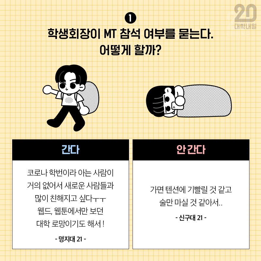 그래서 물어봤다. 코로나 학번은 MT에 대해서 어떻게 생각해?
