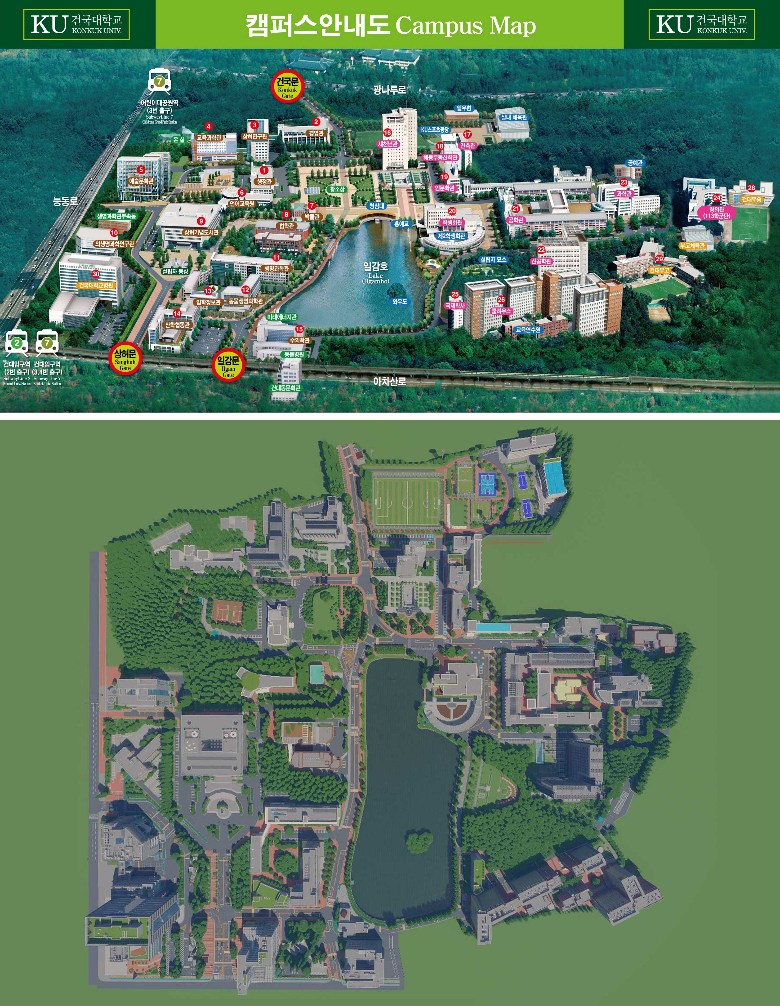 (위) 건국대학교 캠퍼스 안내도, 출처: 건국대학교 (아래) 확장 예정인 마크 건대 캠퍼스의 전체 모습 한두 번 해본 솜씨가 아닌데, 전에도 비슷한 것을 만든 경험이 있나요?