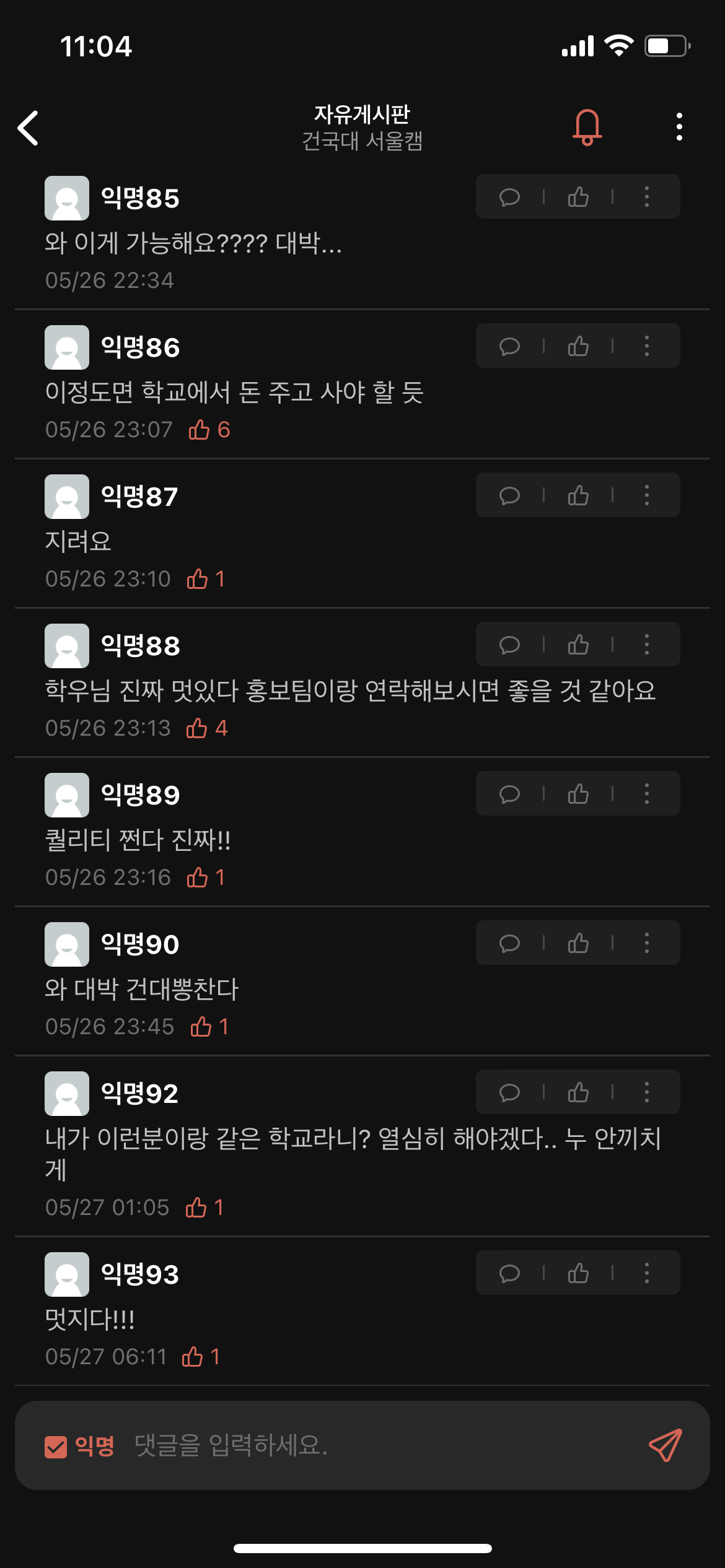건대생이 함께 즐길 수 있는 공간이 되면 좋겠어요. 게임도 구현할 수 있어서 에타에서 인원을 모아 같이 놀아보고 싶어요. 무엇보다 많은 분이 재미있게 봐주시면 좋겠어요.