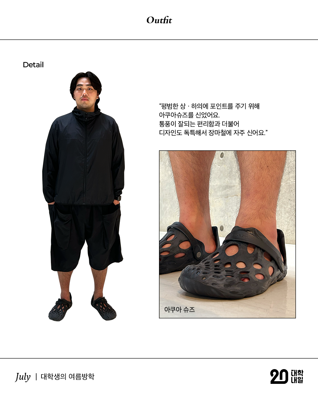 “바지가 젖는 걸 싫어해서 가벼운 소재의 여름 반바지를 입어요.