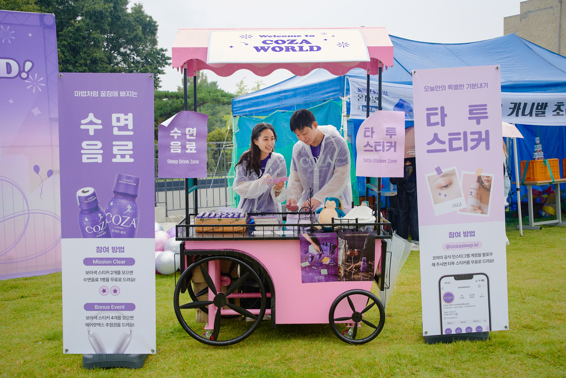 하반기 스폰서로 몇 개 기업이 부스 참여를 했는데, 코자아(COZA) 역시 그중 하나였다. 브랜드의 키 컬러인 보라색으로 부스와 플래카드를 디자인해 축제 광장의 적지 않은 부분을 보랏빛으로 물들이고 있었다.