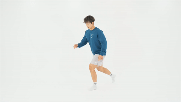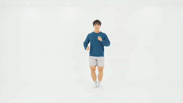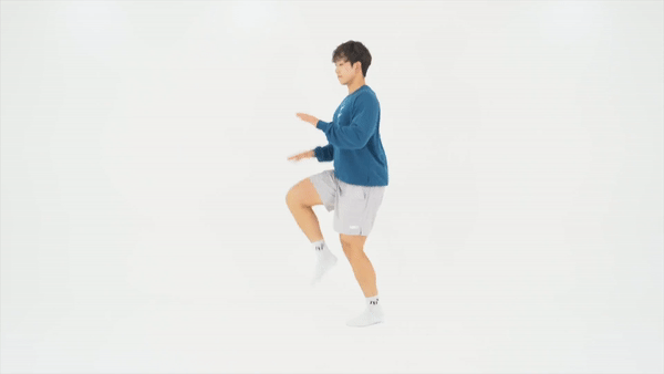 1) 무릎을 허리 높이까지 들어올리며 가볍게 뛴다.