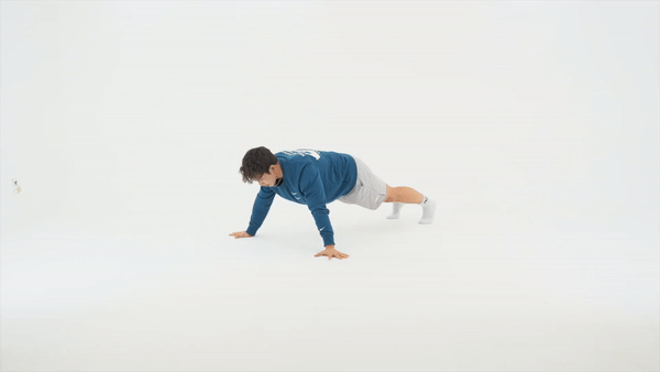 1) 두 팔을 땅에 짚고 다리를 펴서 발을 뒤로 뻗는다.