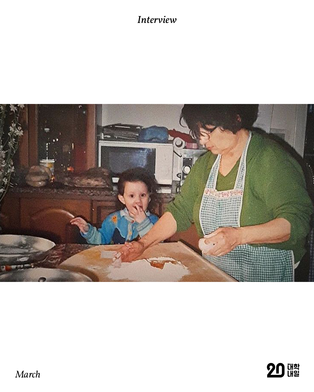 본격적인 요리가 아니라도 부엌에서 이것저것 해본 경험은 정말 오래됐다. 할머니, 할아버지께서 핏제리아를 30년 넘게 운영하셨거든. 어릴 때 할아버지와 작은 피자를 만들고, 할머니를 도와 채소를 손질했던 기억이 난다. 요리사가 꿈은 아니었지만, 항상 할머니처럼 요리하고 싶었다.