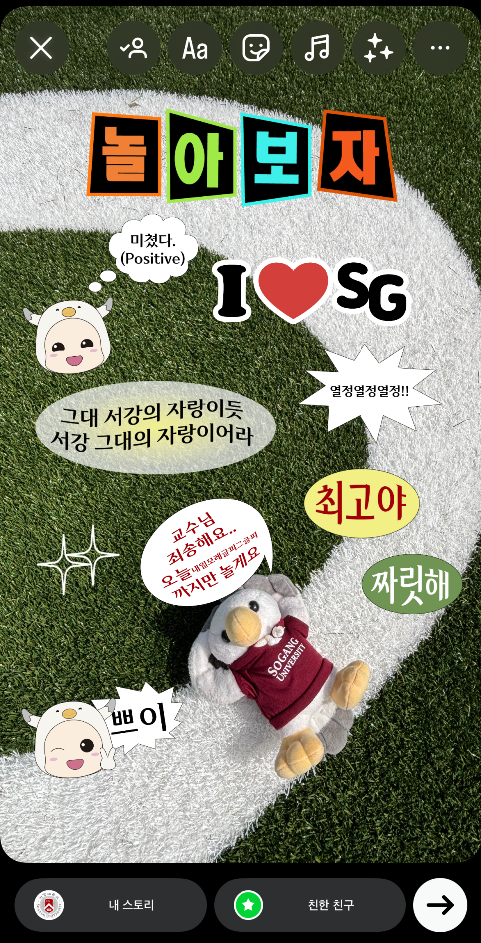 여기 평소보다 특별한 인스타 스토리를 업로드할 수 있는 스티커가 있다. 서강대학교는 2025 봄 축제 기간 중 재학생들이 요긴하게 쓸 수 있는 인스타 스토리 스티커를 제작했다.
