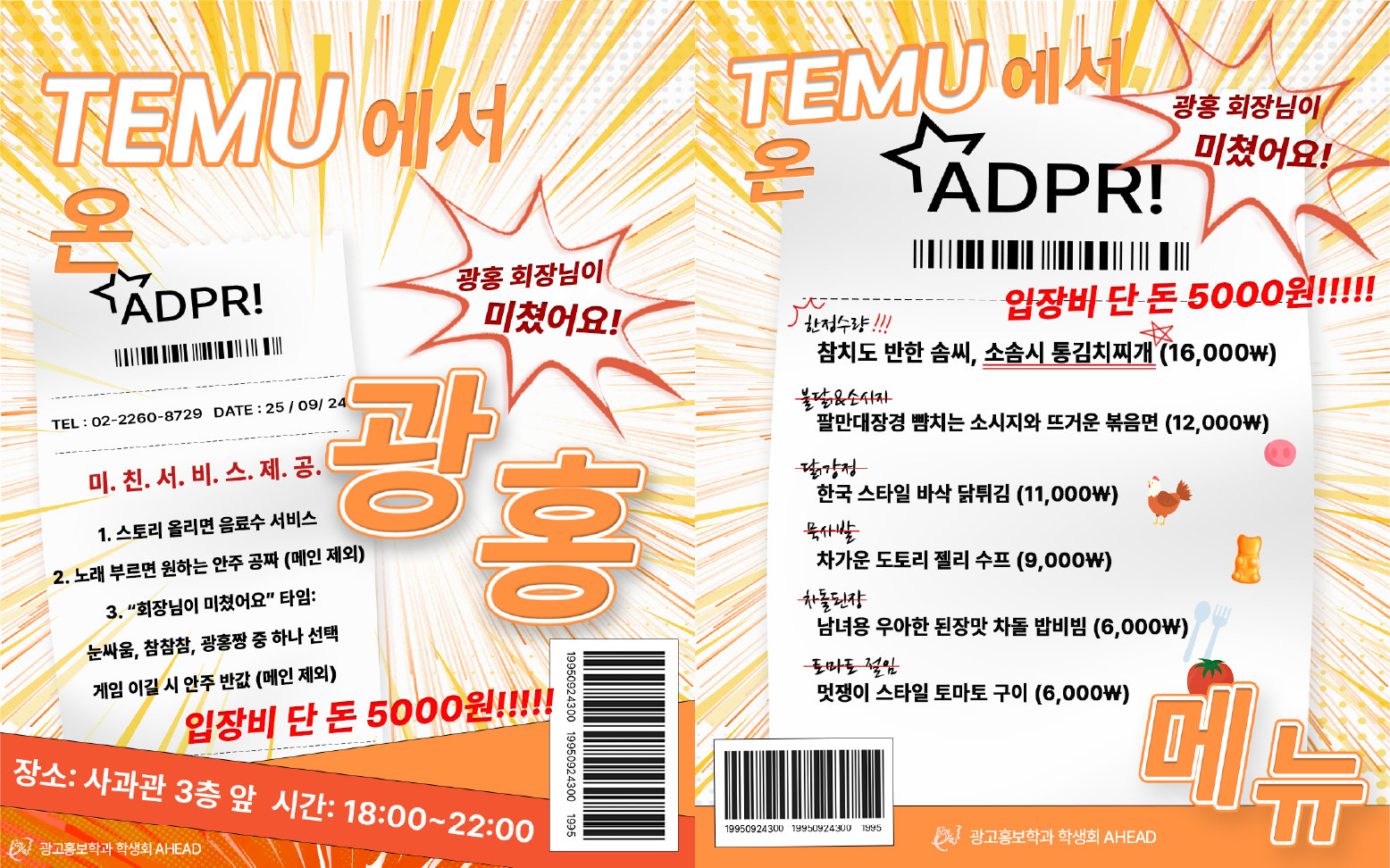 저희 광고홍보학과의 주점 콘셉트는 테무로 정했습니다. 광고홍보학과인 만큼, 어떻게 하면 평범하지 않으면서 사람들이 익숙하게 즐길 수 있을까를 고민하다가 '재미를 주자!'라는 방향성이 정해져서 테무라는 콘셉트가 나오게 되었습니다.