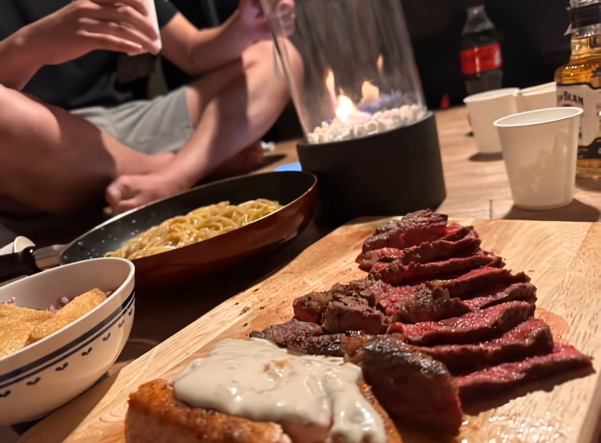 2년 전 중간고사 기간에 시험 시작까지 이틀도 안 남은 시점에서 친구 자취방에 놀러 가 밤새 술을 마셨습니다. 파인 다이닝 코스라면서 스테이크도 굽고 파스타도 만들고 그럴싸하게 요리했어요.