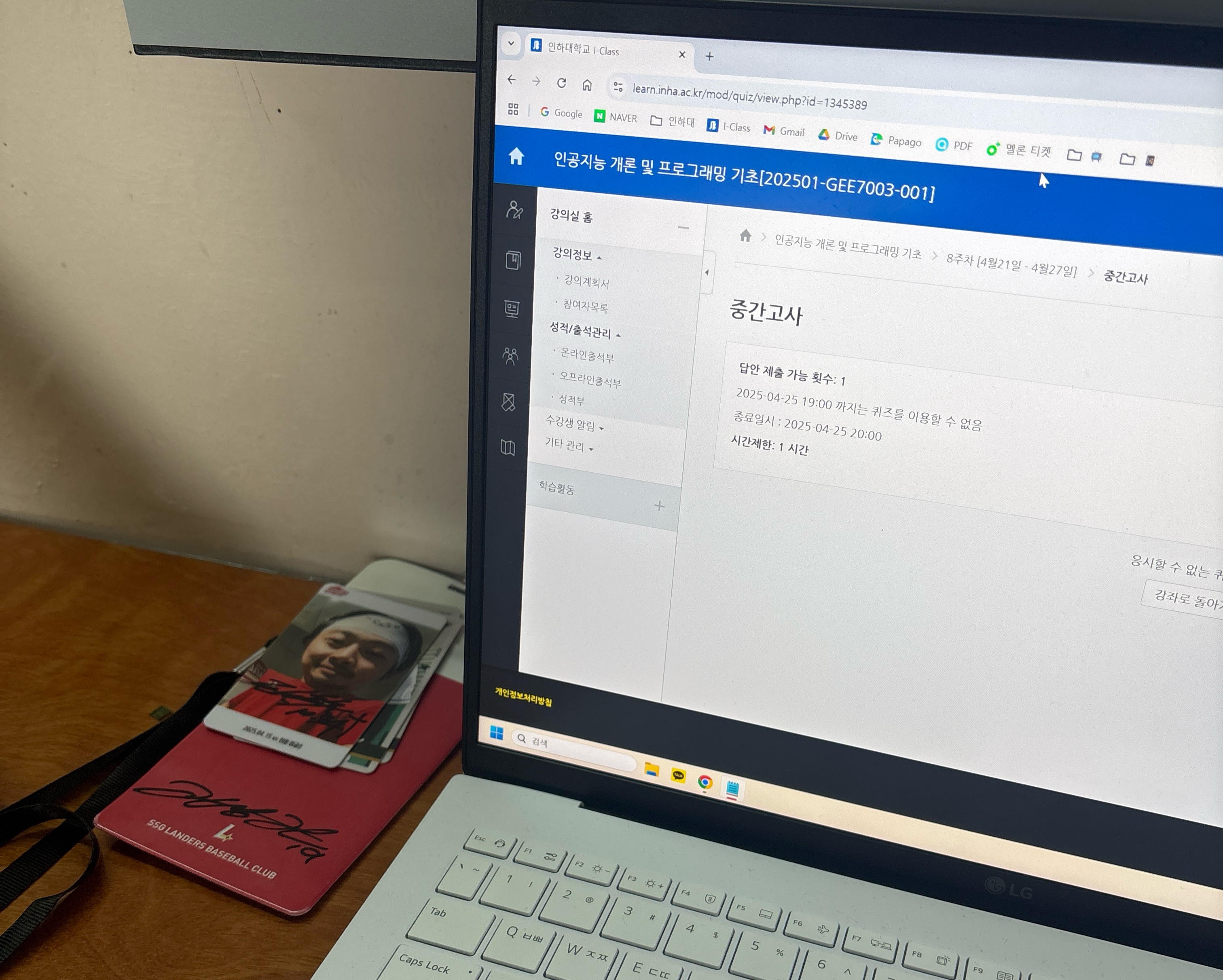 올해 1학기 중간고사 기간에 온라인 강의 교양 과목 시험을 야구장에서 응시했습니다. 원래 시험 끝난 다음 날 경기를 보러 갈 계획이었는데, 티켓팅할 때 날짜를 착각해서 시험과 겹치게 됐어요.