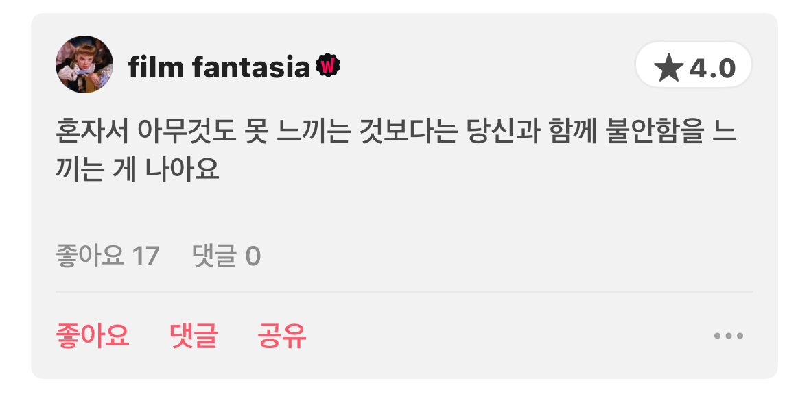 아름다운 사랑의 형태를 잔혹한 동화처럼 표현한 작품이다. 리포터 또한 이 영화를 보며 예상치 못한 위로를 받아 깊은 여운이 남았다. 고전적이면서도 철학적인 메시지를 담고 있어, 문학과 철학적 사유를 좋아하는 대학생들에게 특히 추천한다. 오는 2025년 11월 7일, '넷플릭스'에서도 공개될 예정이다.