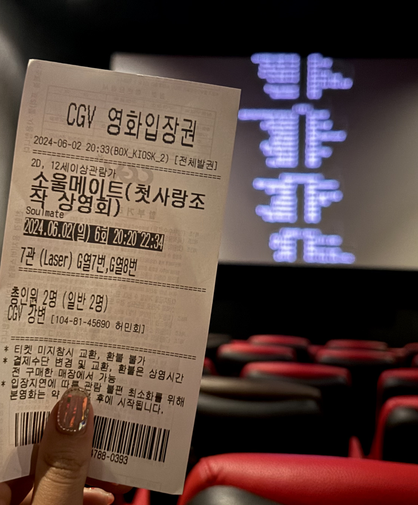 지금 생각하면 영화 보러 가기 전에 몇 번 더 만나고, 서로를 더 알아가는 시간을 가졌으면 좋았을 것 같아요. 두 번째 만남에 냅다 영화를 보러 간 거였거든요...^^ 그래도 좋은 추억으로 남아서 떠올릴 때마다 웃음도 나고, 앞으로 관심 있는 상대에게 어떻게 다가가야 되는지 배울 수 있는 시간이었습니다.