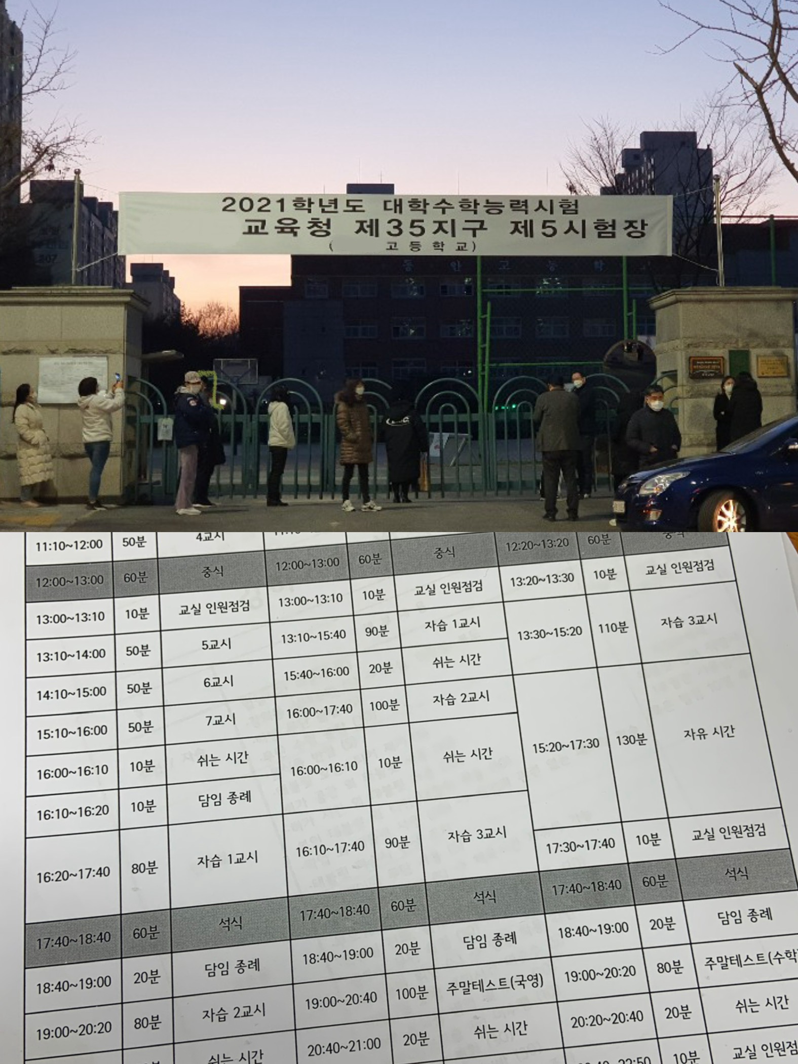 첫 번째 수능 고사장 / 재수 기숙학원 일정표대학 생활 중 수능보다 더 큰 도전이라고 느꼈던 순간이 있었나요?