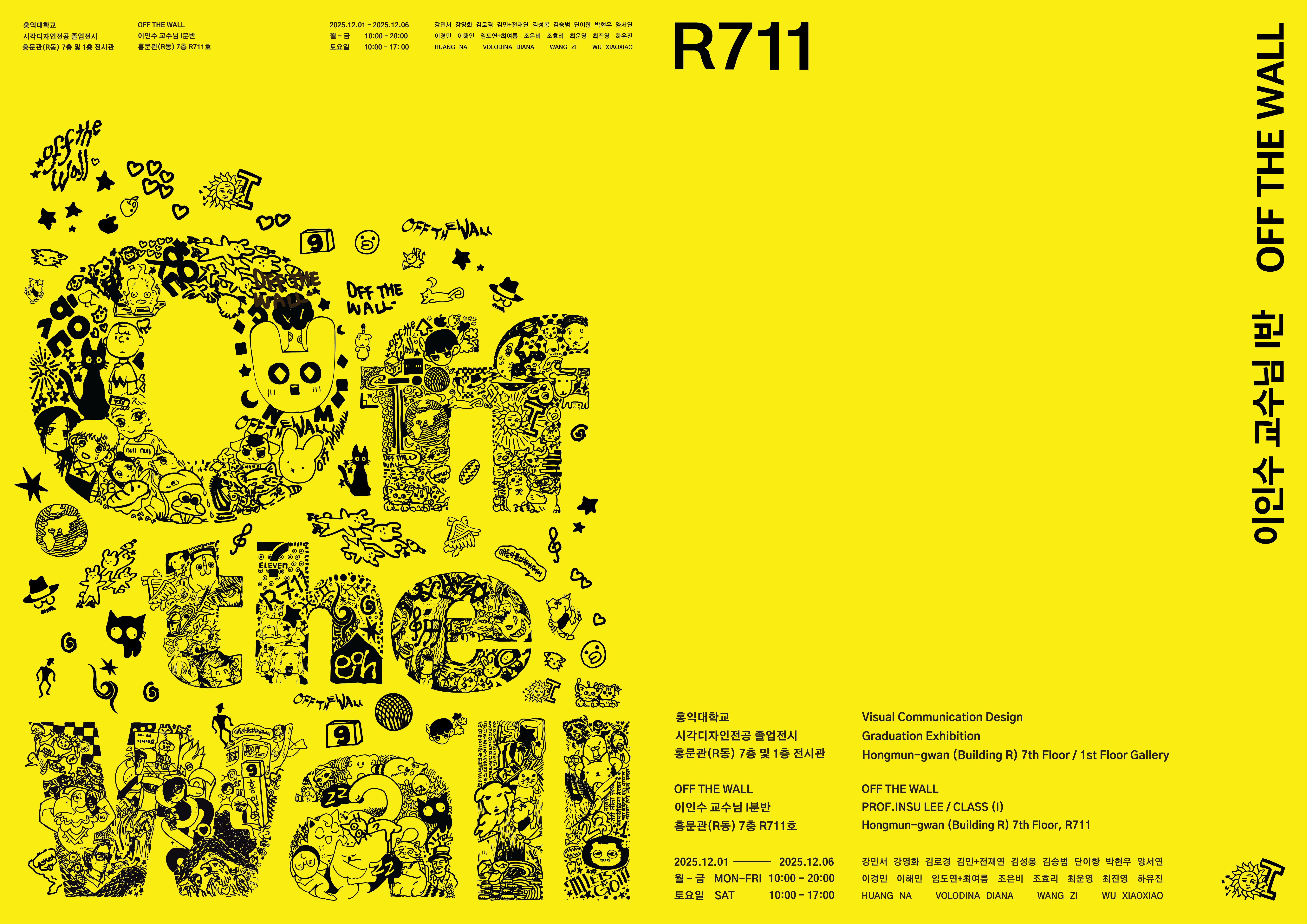홍익대학교 시각디자인전공 졸업전시는 12월 1일부터 6일까지 열린다. 학생들의 노력과 열정을 직접 마주해보면 어떨까. 소문의 주인공, R711 전시실을 찾아가는 재미도 쏠쏠할 것이다.
