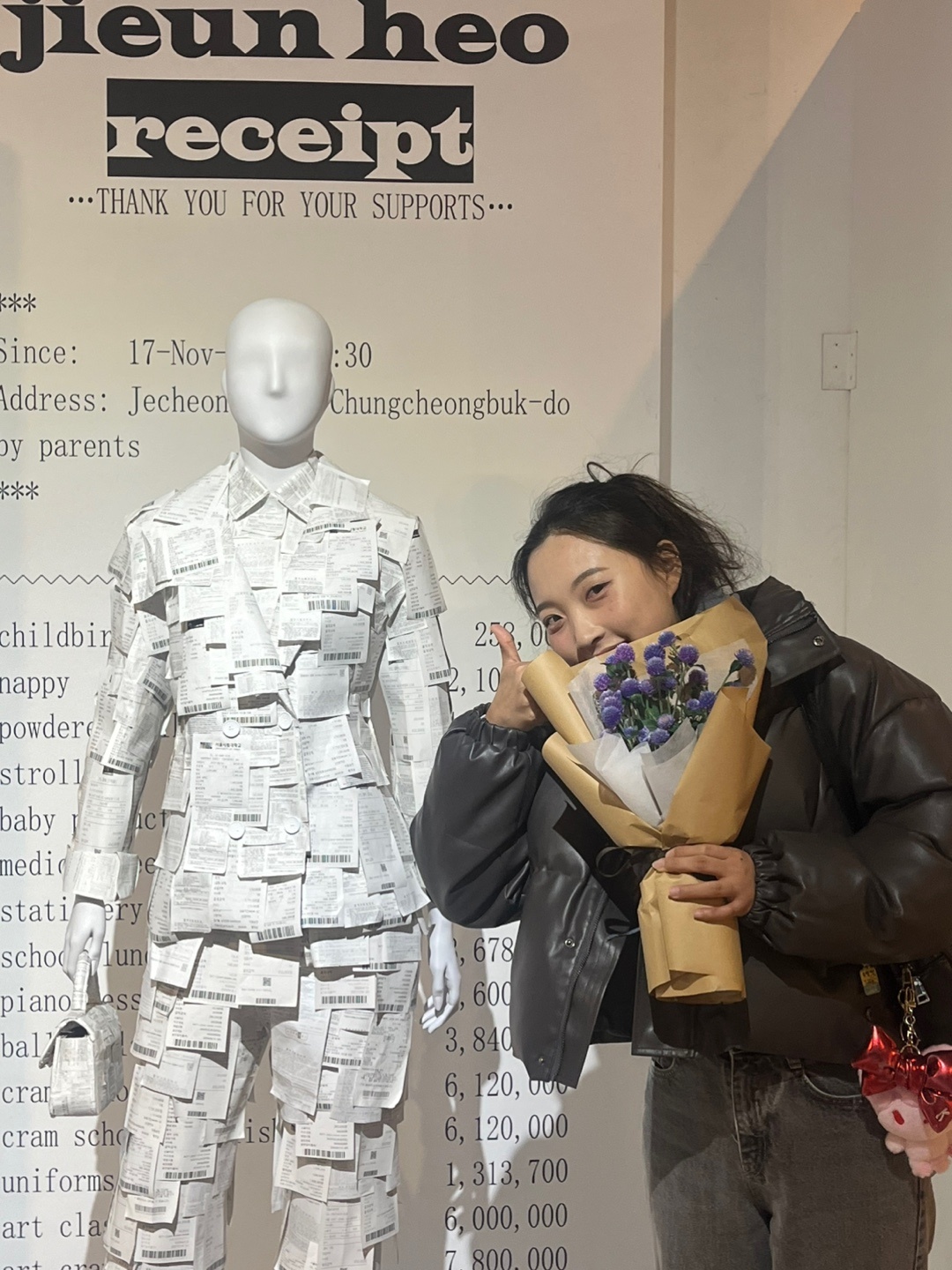 마네킹의 가격 때문에 고민했었어요. 새 제품의 경우에는 기본 20만 원에서 50만 원까지였기 때문에, 10만 원에 중고 제품을 구매하여 고쳐 사용했습니다. 그 외에도 베이스가 될 정장, 가방, 구두, 영수증 기계도 중고로 구매하거나 최대한 저렴한 새 제품을 찾았습니다. 장터에서 학생들이 쓰다 남은 재료를 구매하거나, 공동구매도 이용했어요.